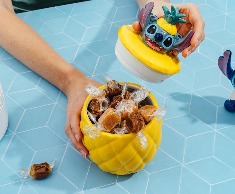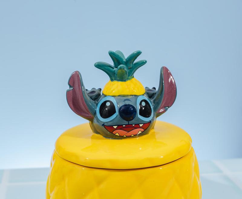 Add a splash of island charm to your space with the Disney Lilo & Stitch Pineapple 3D Sculpted Ceramic Snack Jar, a delightful blend of Hawaiian flavor and Stitch's signature mischief. Whether you're storing sweet treats, small treasures, or just looking to add some Disney fun to your countertop, this jar is as functional as it is irresistibly adorable. Shaped like a ripe golden pineapple, this vibrant ceramic container features 3D sculpted detailing and a playful lid that showcases Stitch peeking out from the top, because let’s be honest, he’s always curious about snacks! The design combines tropical flair with a touch of chaos, just like everyone’s favorite genetically engineered alien.