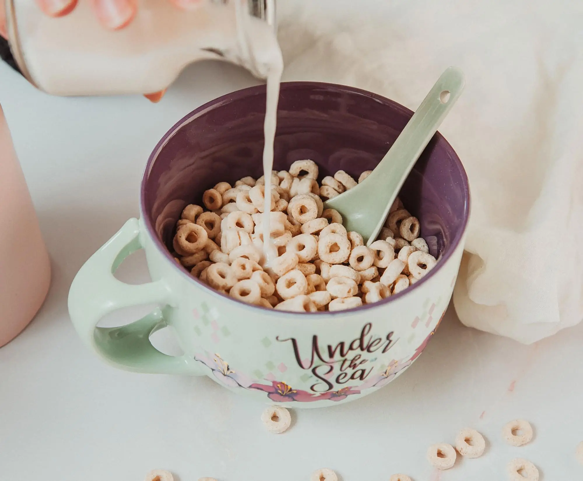 Disney The Little Mermaid Ariel Ceramic Soup Mug With Spoon | Holds 24 Ounces