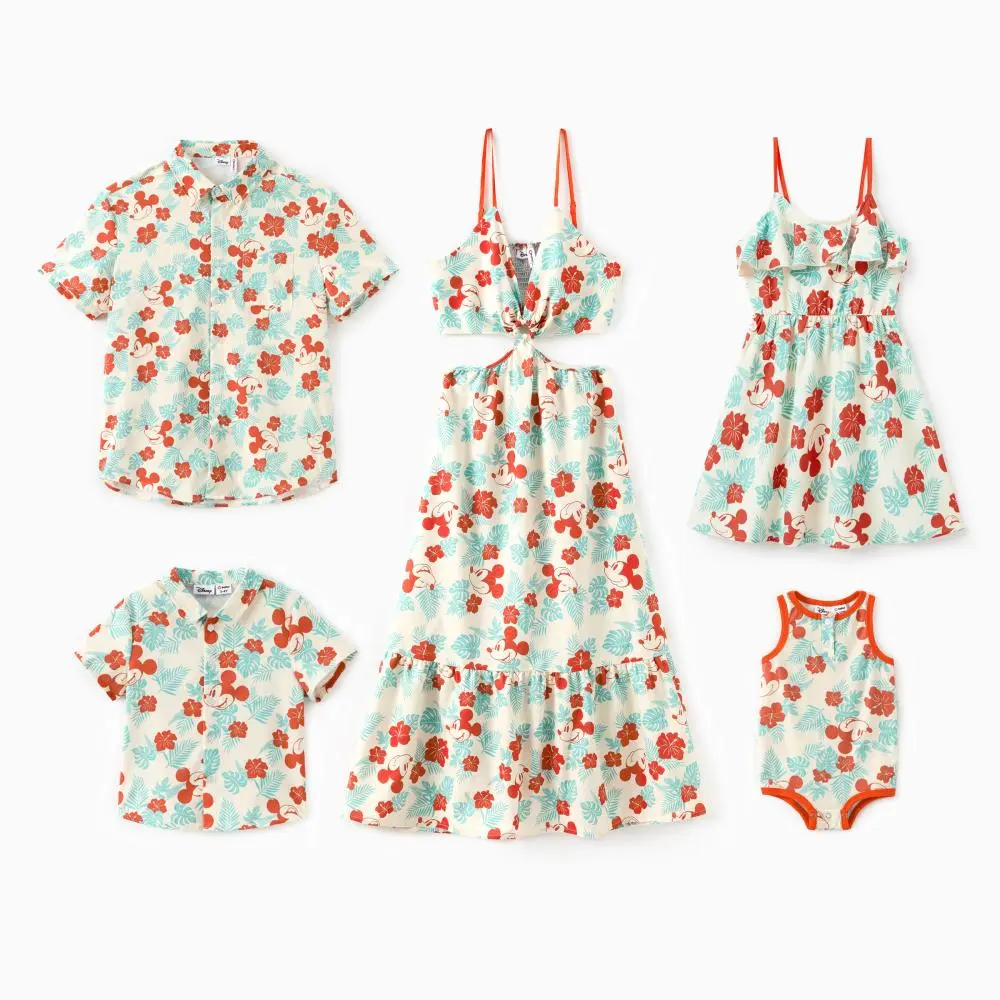 ·Official Disney Mickey Mouse Tropical Print – Officially licensed by Disney, featuring vibrant Mickey Mouse, palm leaves, and floral patterns. Perfect for family beach vacations, summer cruises, and photo ops, with cohesive matching styles for every family member.