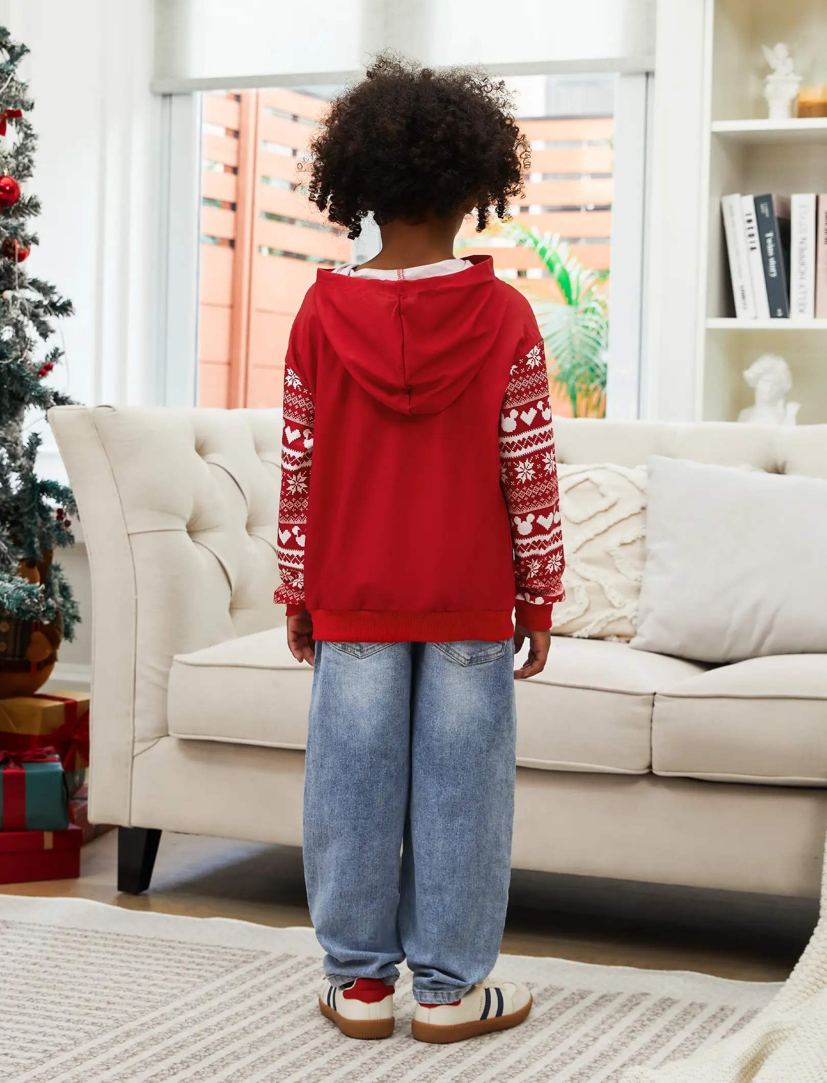 The hoodie showcases a charming snow pattern. It's a delightful addition to your holiday wardrobe. The long sleeves provide extra comfort. These pullover sweatshirts are versatile for various holiday activities.