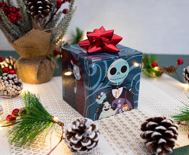 Fun and functional, this awesome Nightmare Before Christmas Jack Faces storage tin is the ideal place to stash your small belongings! Crafted from quality tin and featuring premium printed graphics, this metal box comes complete with a removable pop-top lid. This unique container measures 4 inches squared. Use it as a fun storage solution or simply to collect and display! The perfect home or office decor makes a great gift for any Nightmare Before Christmas fan!