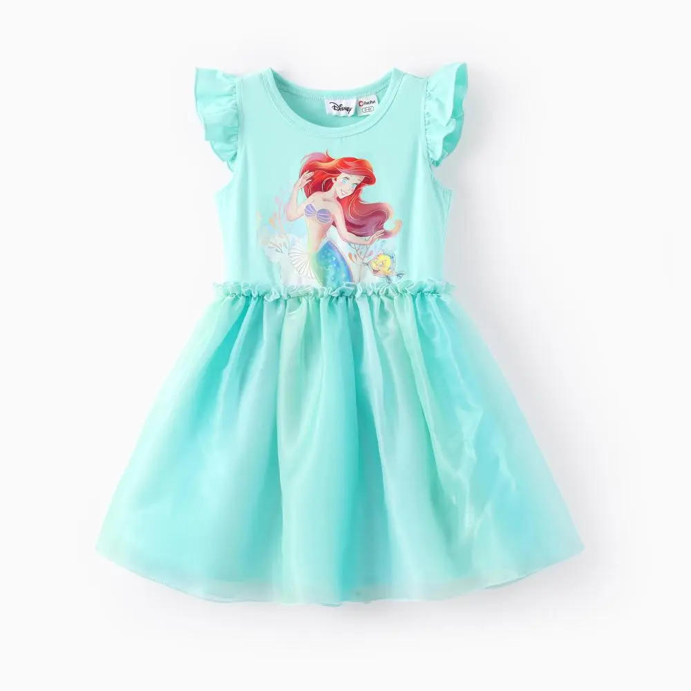 Includes 5 versatile designs: 1) Ariel teal ruffle-sleeve tulle dress; 2) Snow White yellow floral tulle dress; 3) Minnie Mouse pink polka-dot tulle dress; 4) Cinderella pink bow-strap sundress; 5) Minnie Mouse vibrant floral print sundress. Perfect for school, playdates, Disney park visits, birthdays, or casual everyday wear.