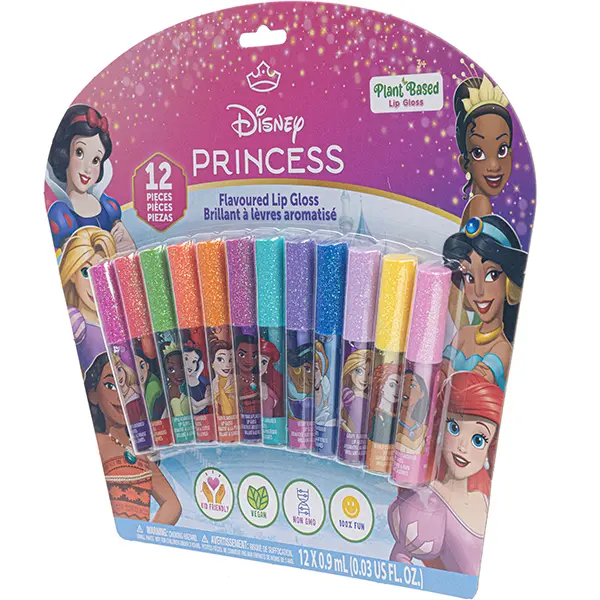 Package arrived in tact. Once I opened it however, the lip gloss was all over the inside of the package as it had already been detached from the princess package. I had to put all the lip gloss back in there slots and tape it shut. Luckily im giving to a 3 yr old who won't notice