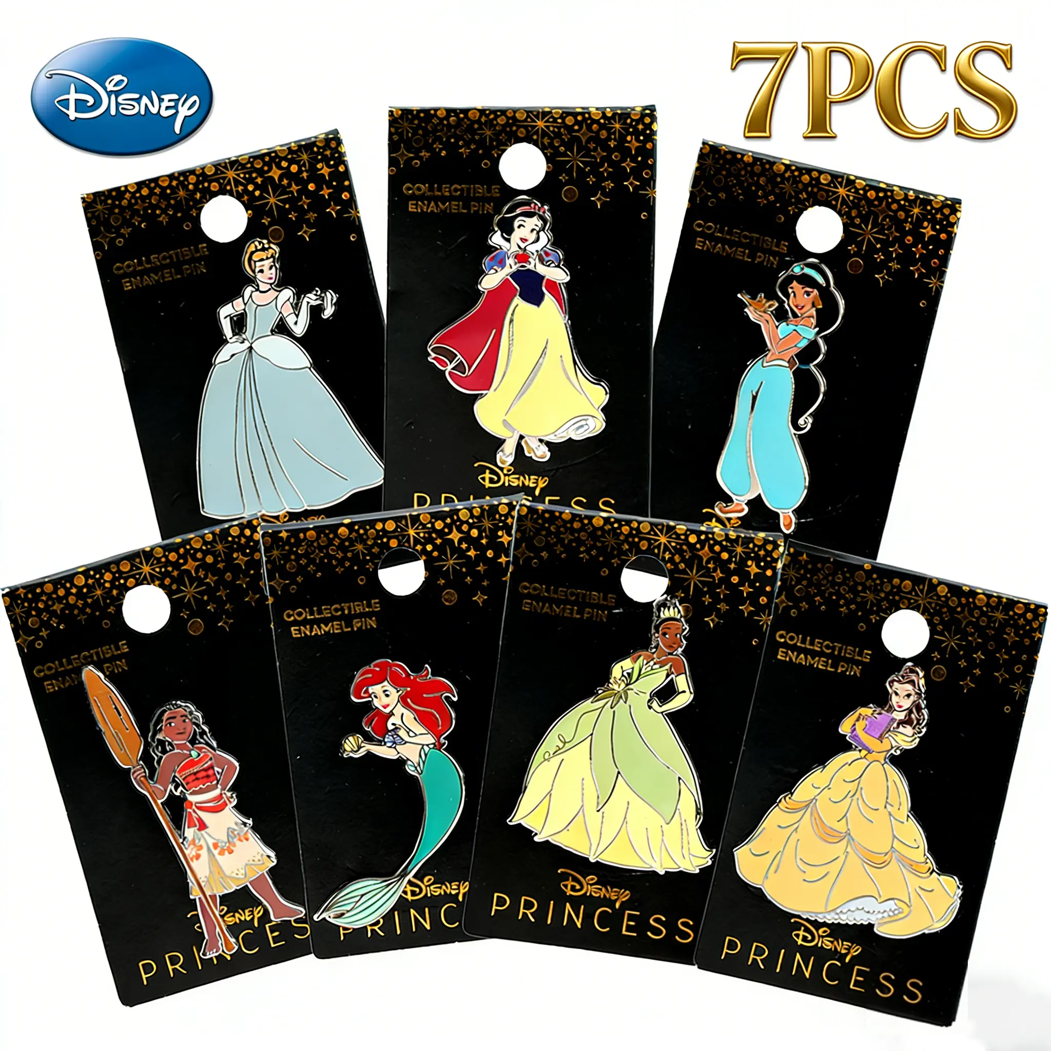 ·Glittering Princess-Themed Packaging: Each pin comes on a star-adorned Disney Princess card, ideal for gifting or organizing your collection