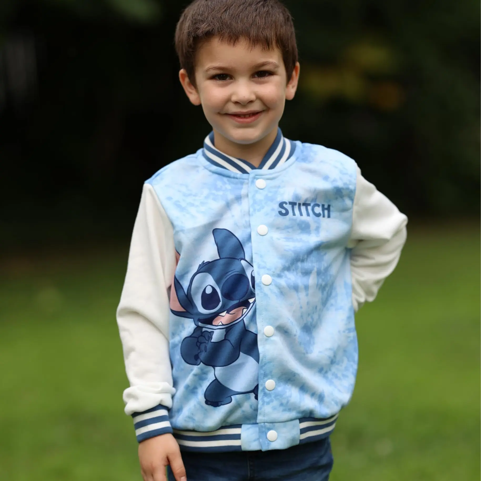 My grandaughter will love this Stitch jacket for Christmas. Very well made of fabric and leather.