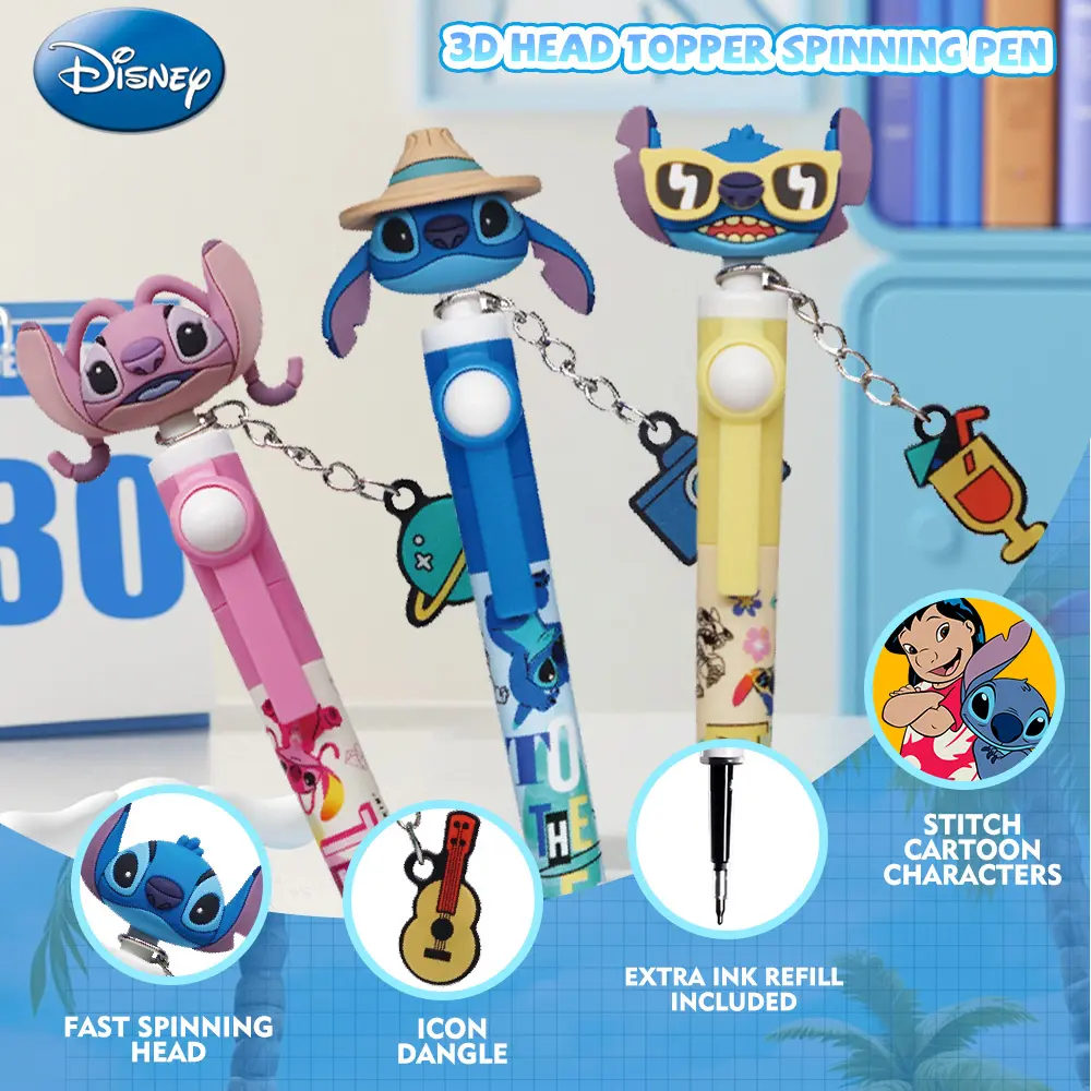 This Disney Stitch Pen Blind Bag comes with a 1PC officially licensed PVC 3D head topper. It features a spinning pen design, perfect for anime figure collectors. The pen is an exclusive Stitch Angel Scrump gift, ideal for fans.