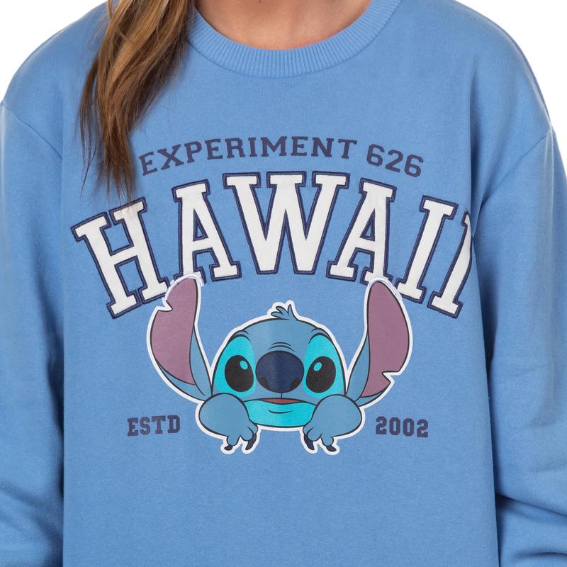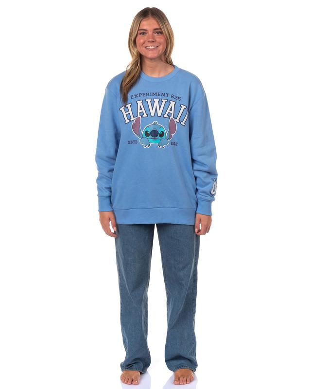 With its crew neckline, ribbed cuffs, and relaxed pullover fit, this sweatshirt keeps you feeling cozy without weighing you down. Pair it with jeans, joggers, or shorts and you’re ready for errands, movie marathons, or just hanging out with friends. It’s easy to care for and will look good after repeated washing. Bold Front Design: Show your love for Stitch with a large front print featuring Stitch, “Hawaii,” and “Experiment 626” text. The colorful graphic adds personality and stands out Easy to Style: This pullover is designed to pair effortlessly with joggers, shorts, jeans, or leggings. Its versatile style works for layering over tanks or tees for year-round wear All-Day Wear: Comfortable enough for lounging, durable enough for running errands, and relaxed enough for casual hangouts. A go-to option when you want something soft yet stylish Simple Care: Machine wash cold with like colors and tumble dry low for quick, hassle-free cleaning. Designed to hold its shape and maintain print quality wash after wash Comfortable Fit: Features a traditional crew neckline, ribbed sleeve cuffs, and a ribbed bottom hem for a snug but relaxed fit