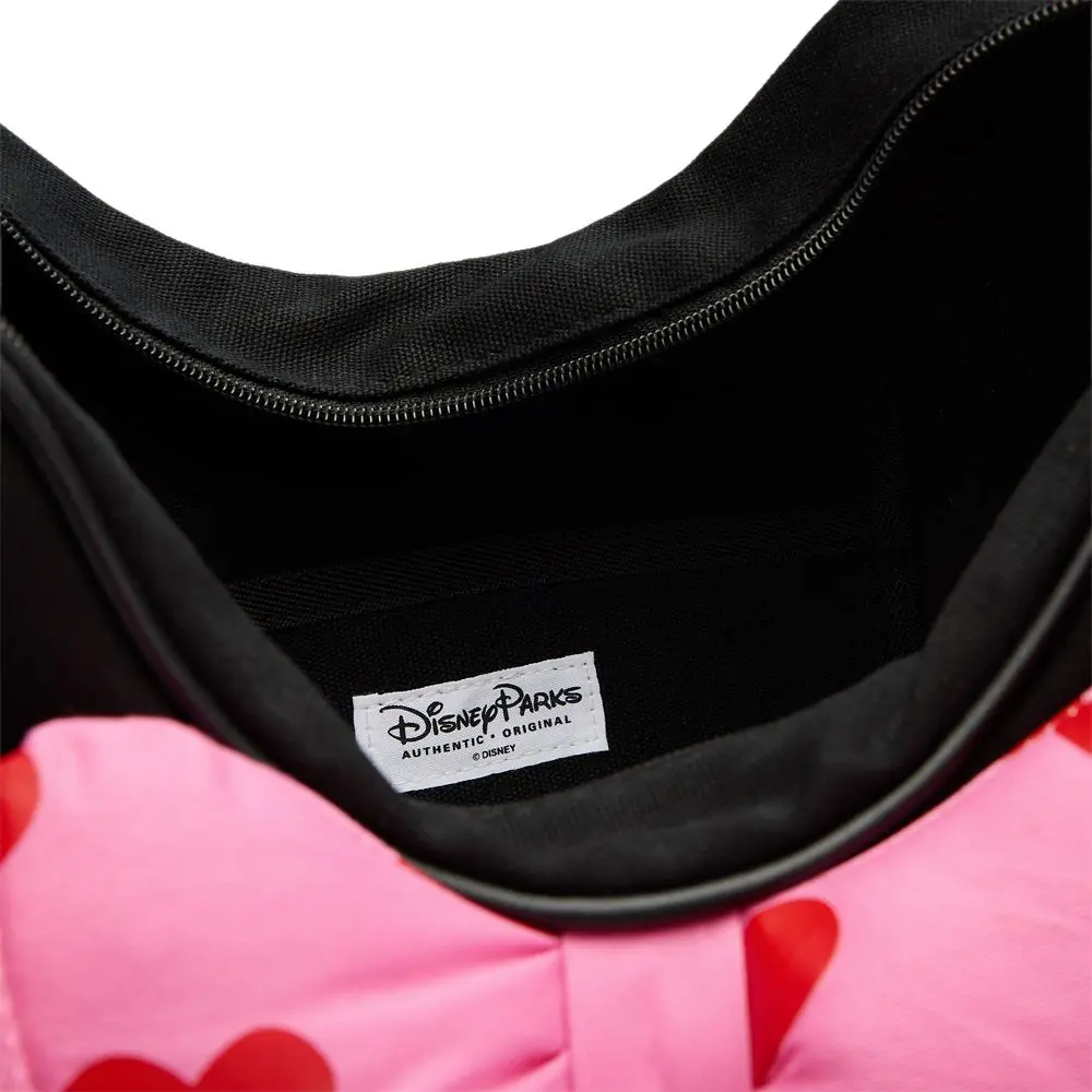 Minnie's ''big face'' tote is a sturdy canvas carry-all with a romantic theme. The mouse icon shape is accented with a large pink bow appliqué with red hearts, plus textured screen art facial features. The fun shape, large size and colorful design will make it your daily go-to for happy times, or a Valentine's Day gift for that someone special.