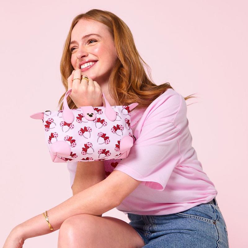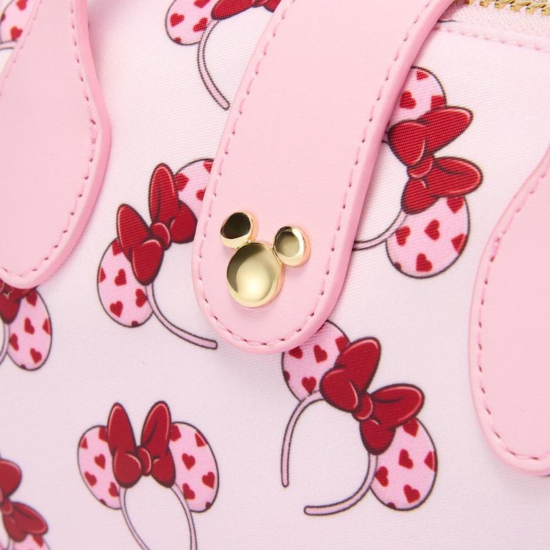 Made with love, this Minnie Mouse pouchette from Stoney Clover Lane makes the perfect Valentine's Day gift. This compact simulated leather bag features an allover Minnie ear headband design with a heart polka dot pattern on the ears. It includes reinforced corners, carry handles, and a detachable crossbody strap for versatile wear.