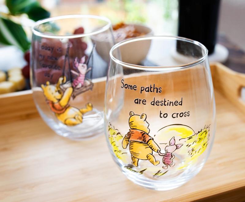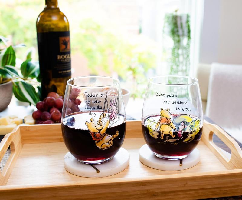 5. Disney Winnie The Pooh Quotes Stemless Wine Glass Set | Each Holds 20 Ounces