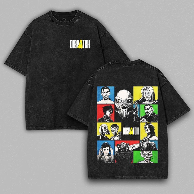 Dispatch Super Hero Double Printed Oversize Lightweight Acid Washed Tee Game Graphic T-Shirt for Men Casual Cotton Fabric Vintage Gaming cute christmas gift Retro Black Tee Oversized Heavyweight Cotton T-Shirts