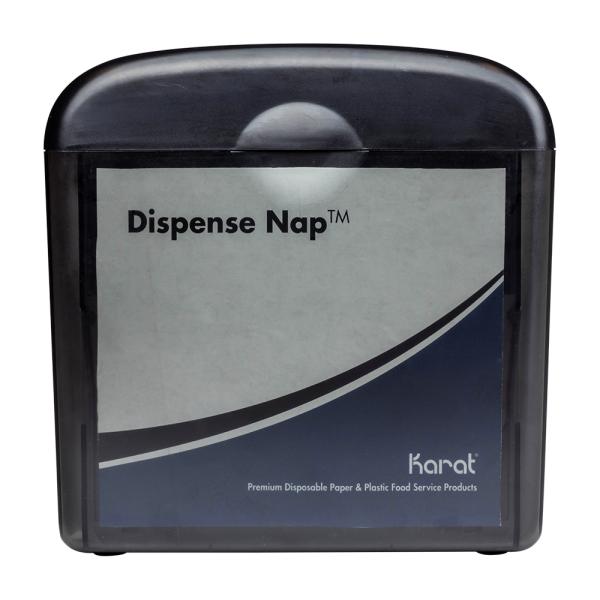 The Karat Dispense NapTM napkin dispenser can help manage napkin usage with its single dispensing design. This compact dispenser fits on small tables and countertops and its smoke color will complement any restaurant decor. The side windows show when napkin supply is low and needs to be refilled. This features a top-loading design that makes refilling super simple!