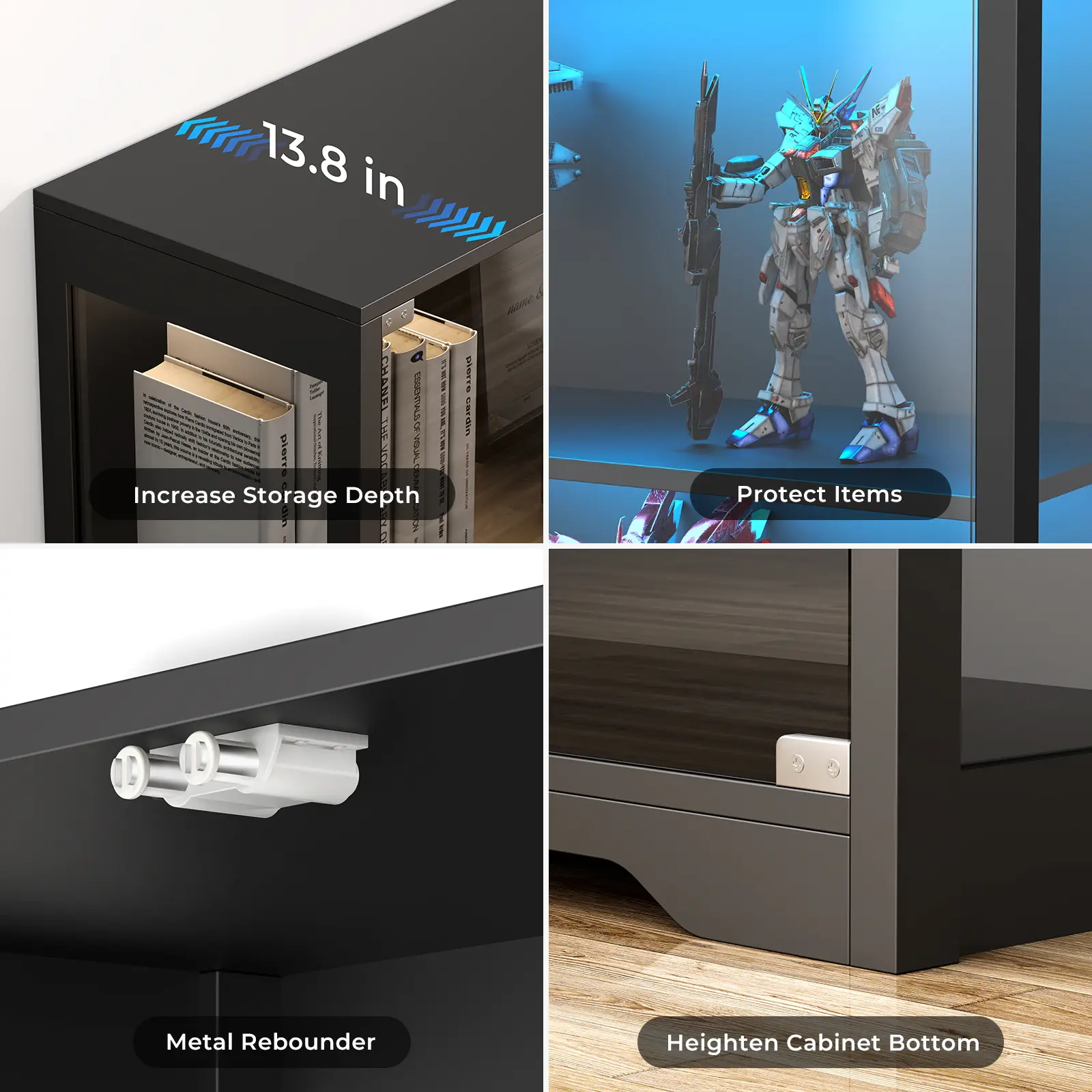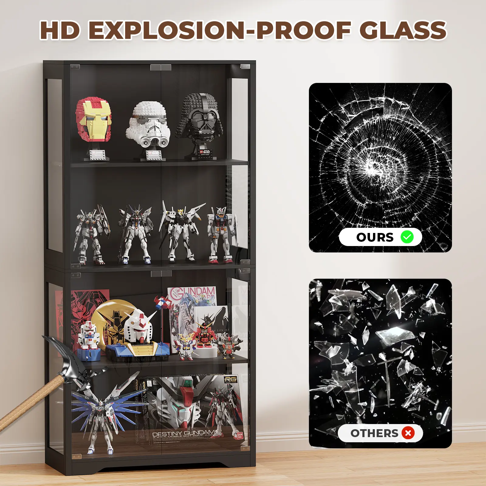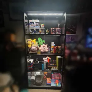 Great display case. Most of the build can be done with a single person. The only difficult part is setting up the glass doors. It would be easier to have another person assist in that part. But overall it’s great. The quality is very good. Has built in LED lights that have a yellow, blue and white.