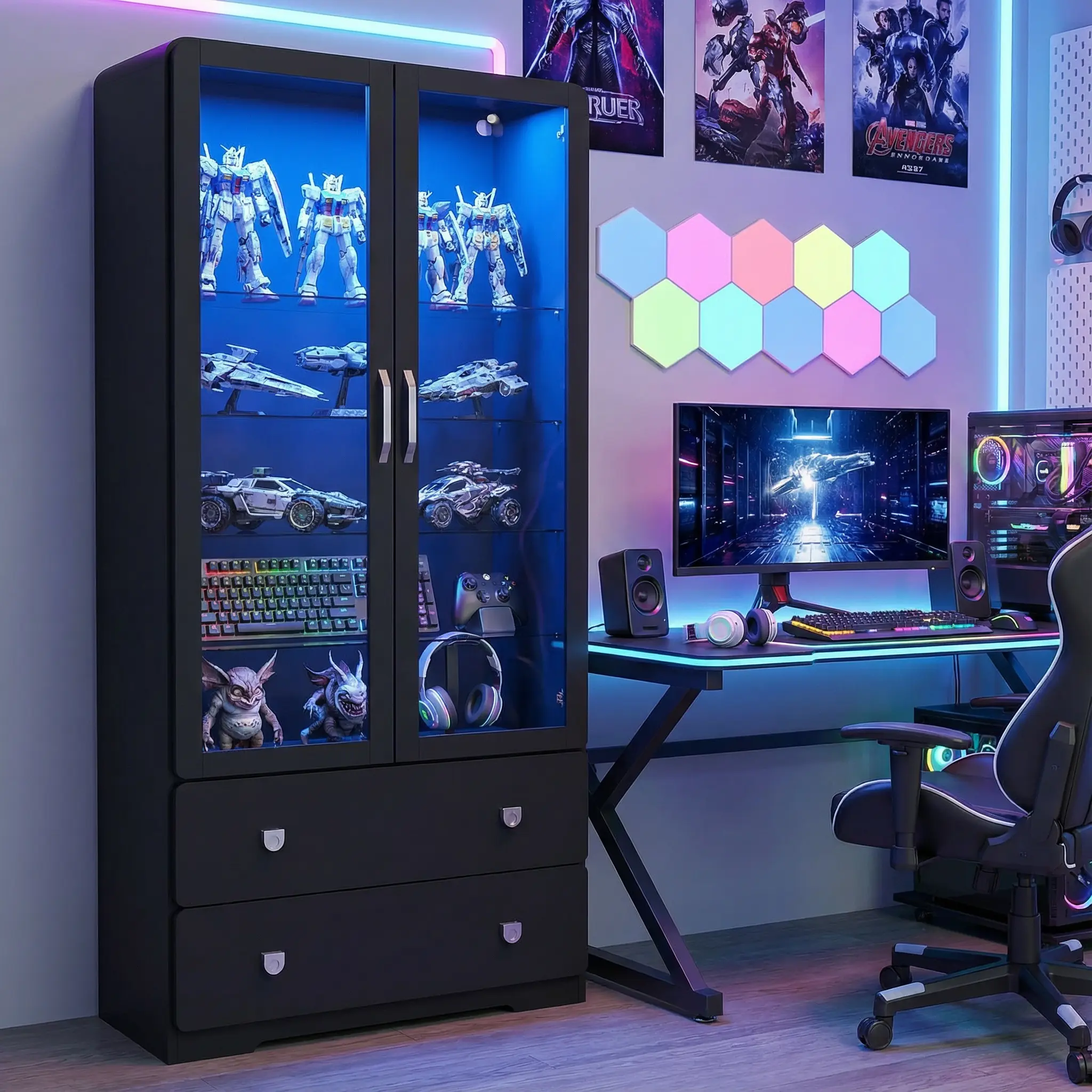 Illuminate Your Collection: This tall curio cabinet features an LED light strip with 7 vibrant colors, adjustable brightness, and a convenient timer, all easily controlled via app or remote. Switch from cozy warm tones to bright, energetic hues to match any mood or occasionâperfect for showcasing figurines, dĂ©cor, or creating the ultimate vibe in your living room, study, or gaming space.