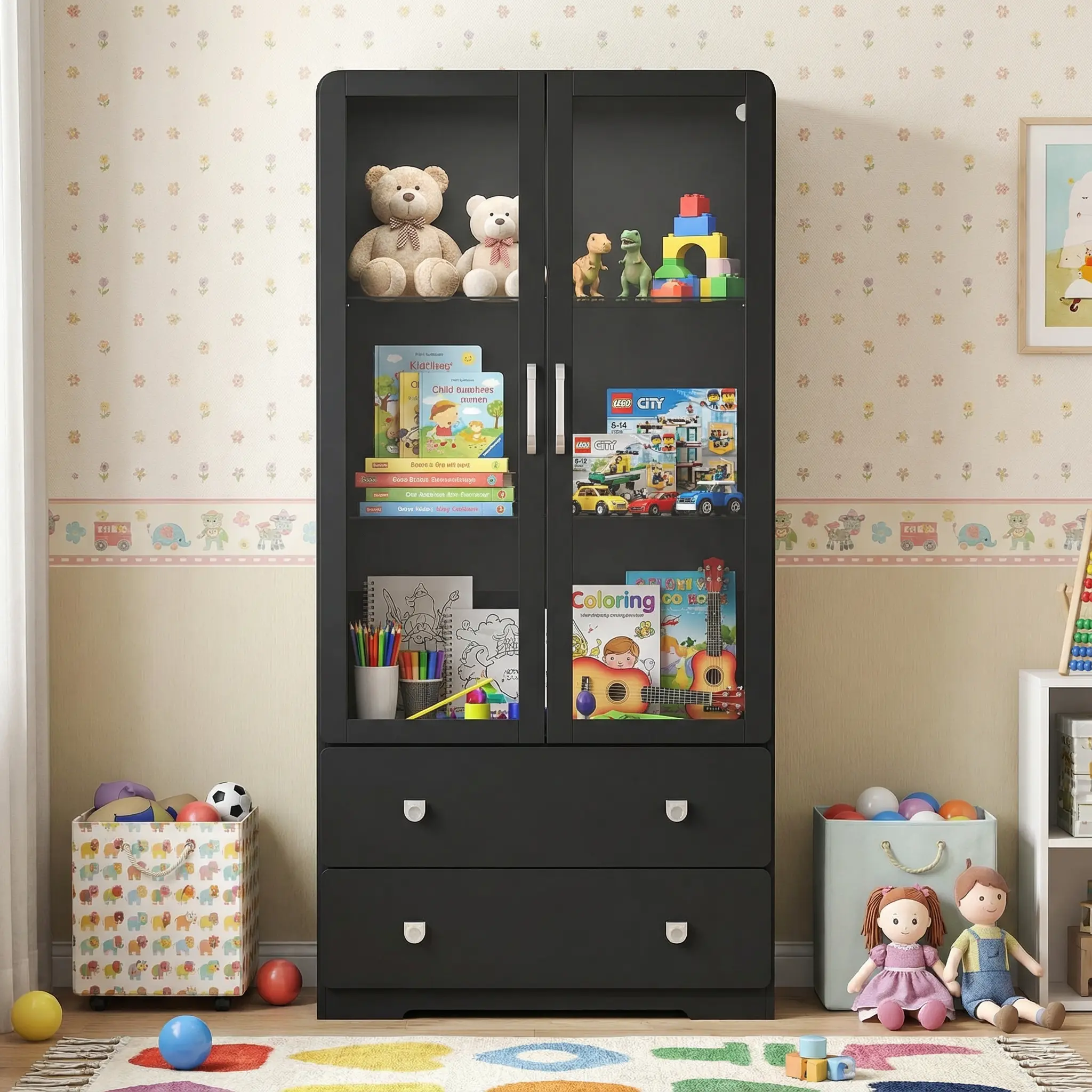Stable and Sturdy: Crafted from high-quality P2-grade MDF and particleboard, this tall cabinet is built for long-lasting reliability. Its smooth, painted surface is easy to clean and maintain, keeping your space tidy with minimal effort. For added safety, the cabinet includes anti-tip hardware to prevent accidental tipping, protecting both your family and your collectibles.