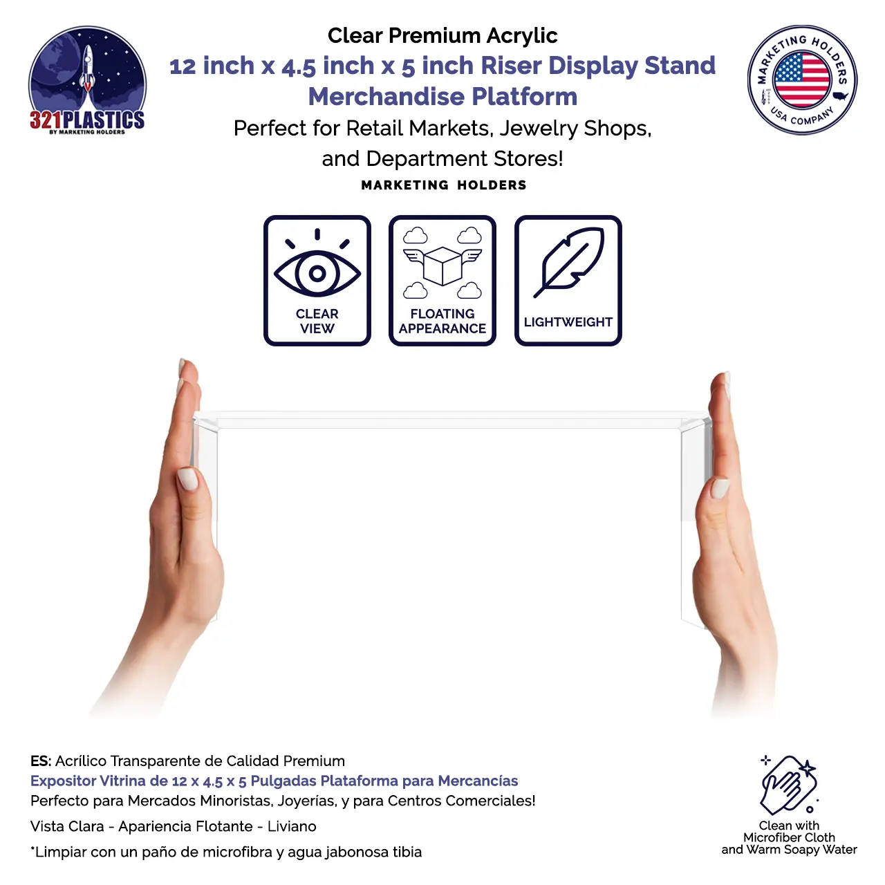 12" x 4.5" Riser Display Stand Acrylic Merchandise Showcase