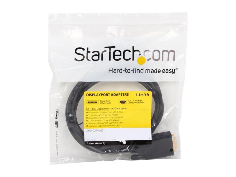 Ever need to connect your modern PC to an older VGA monitor or projector? This 6 ft active DisplayPort to VGA adapter cable from StarTech.com is your perfect solution. Designed for DP-enabled desktops and laptops, it supports crisp video up to 1920x1200 resolution, ensuring your presentations and work visuals look sharp. Whether you're expanding your workspace with an extra monitor or hooking up to a VGA projector for meetings, this cable makes the connection simple and reliable. The built-in active converter means no extra power supply is needed—just plug and play. Its sleek black design fits right in with your existing gear without standing out. Inside the box, you get the 6 ft DisplayPort to VGA adapter cable ready to use. Upgrade your setup effortlessly and enjoy more screen real estate today!