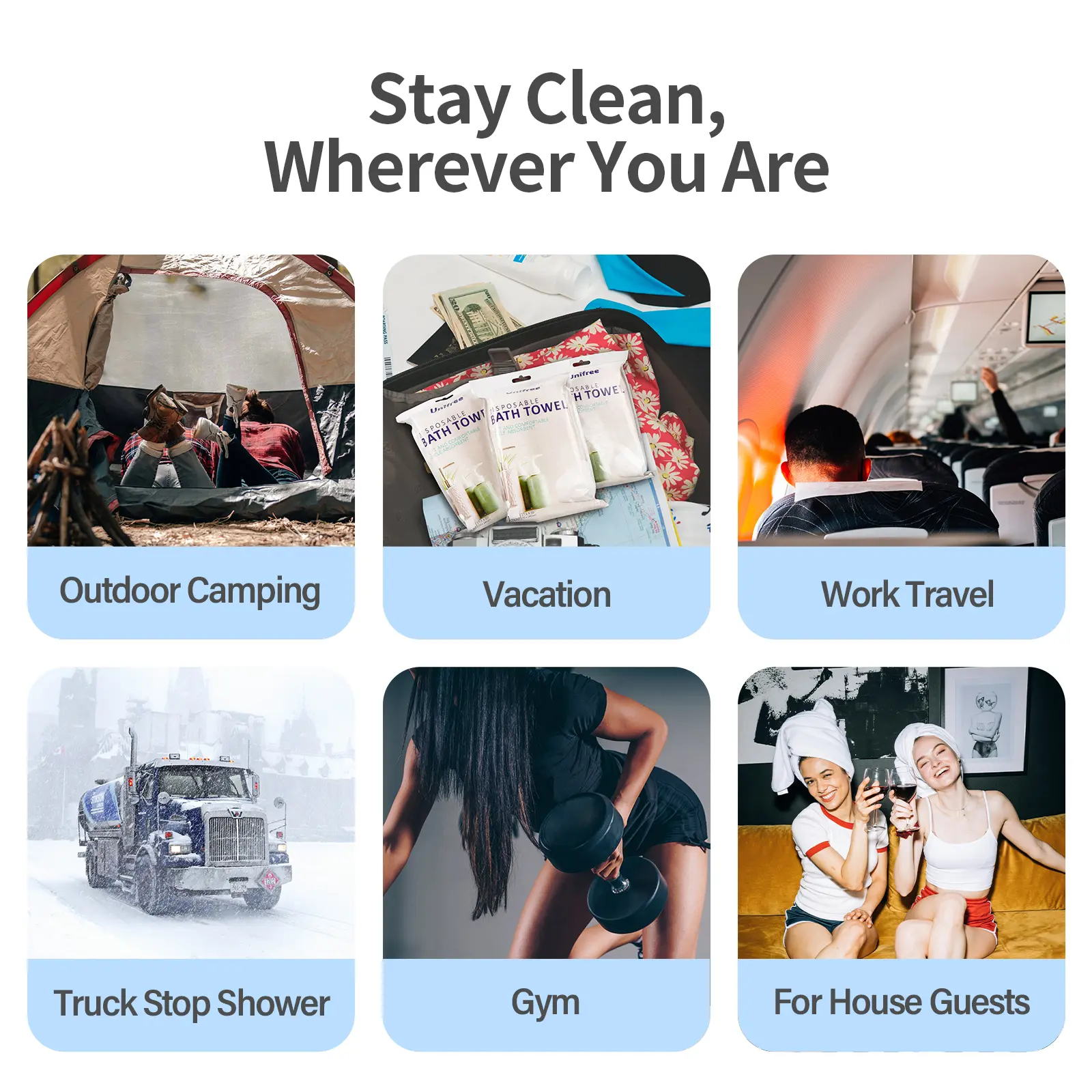 ·Perfect for Travel & Outdoor Use: Large, full-body towels ideal for business trips, camping, vacations, and hotels, offering a clean and convenient solution on-the-go.