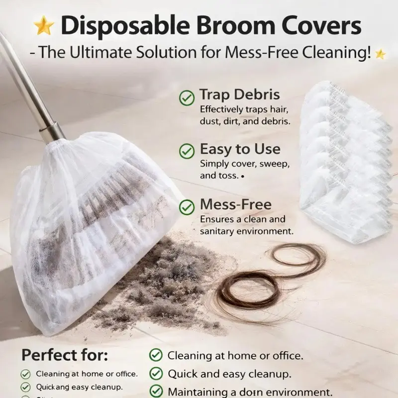 50PCS Disposable Broom Covers - The Ultimate Solution for Mess-Free Cleaning! Effortlessly Trap Hair, Dust, Dirt, and Debris. Simply Cover, Sweep, and Toss for a Quick, Sanitary Cleanup Without the Hassle. Home Cleaning Products