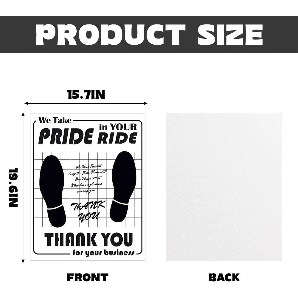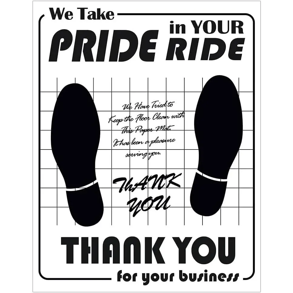 Gratitude Phrases: Elegantly printed with tasteful and appreciative wording like "THANK YOU for your business" or "We Take PRIDE in YOUR RIDE" blend practicality with emotional appeal, subtly reinforcing brand loyalty and customer connection