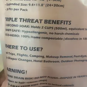 I am so pleased to see this disposable compressed Towels they work amazing you just open the package drop it in water and it opens up just like a washcloth you can use for anything your face your hands wipe off your table, etc. definitely need to try it out. Get yours today. Love it.