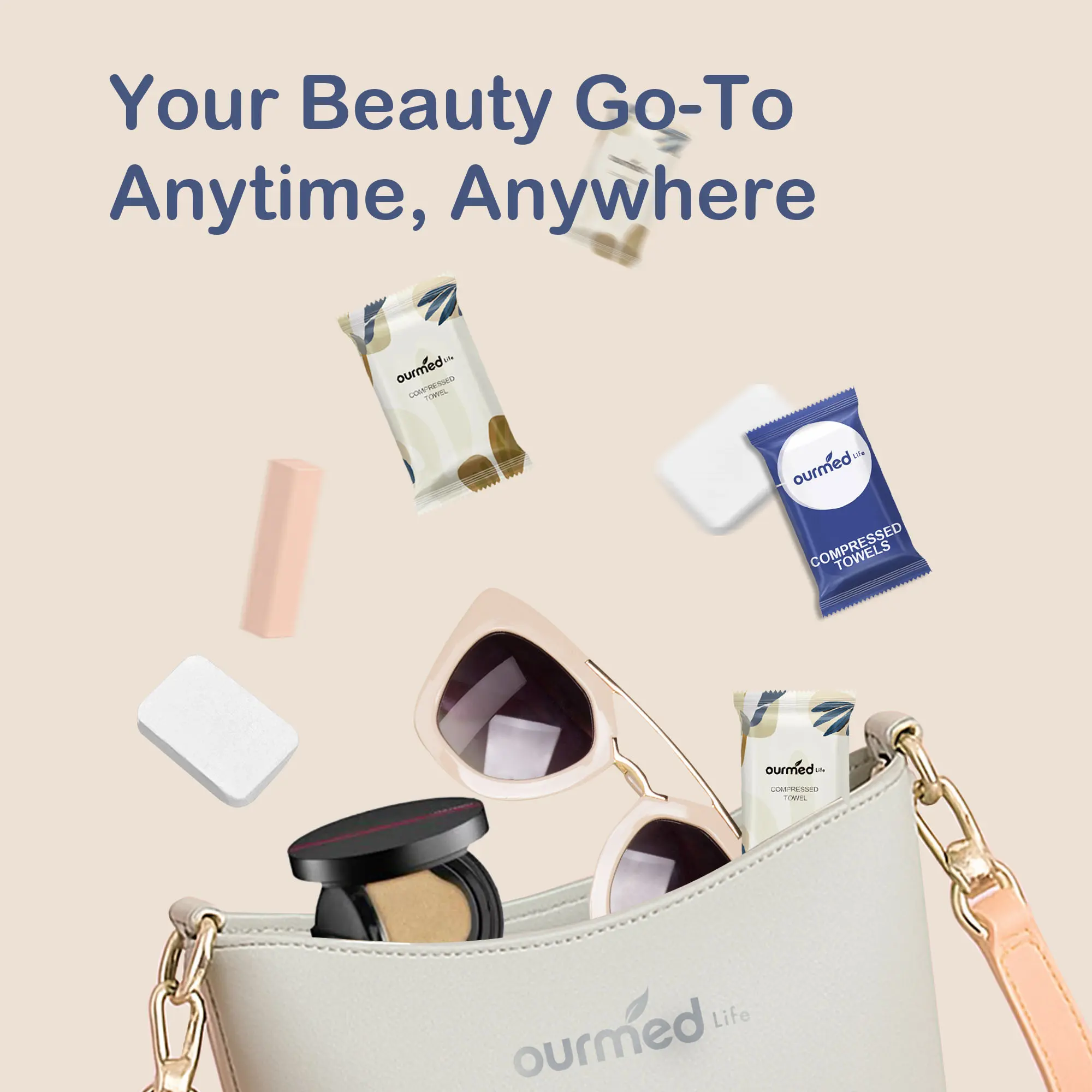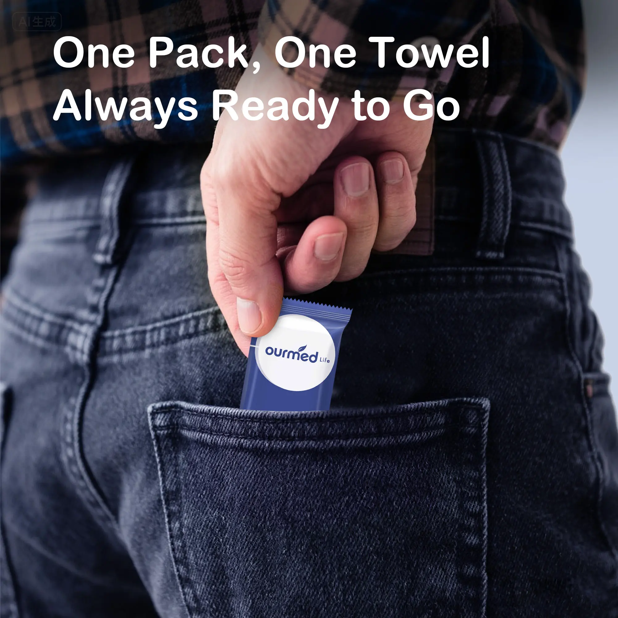 Ourmed Life compressed towels are pocket-size, making them effortless to carry anywhere. Keep a few in your purse, backpack, gym bag, or car. Each towel comes individually wrapped for clean, hassle-free use on the go. Perfect for quick, convenient cleaning without the bulk.