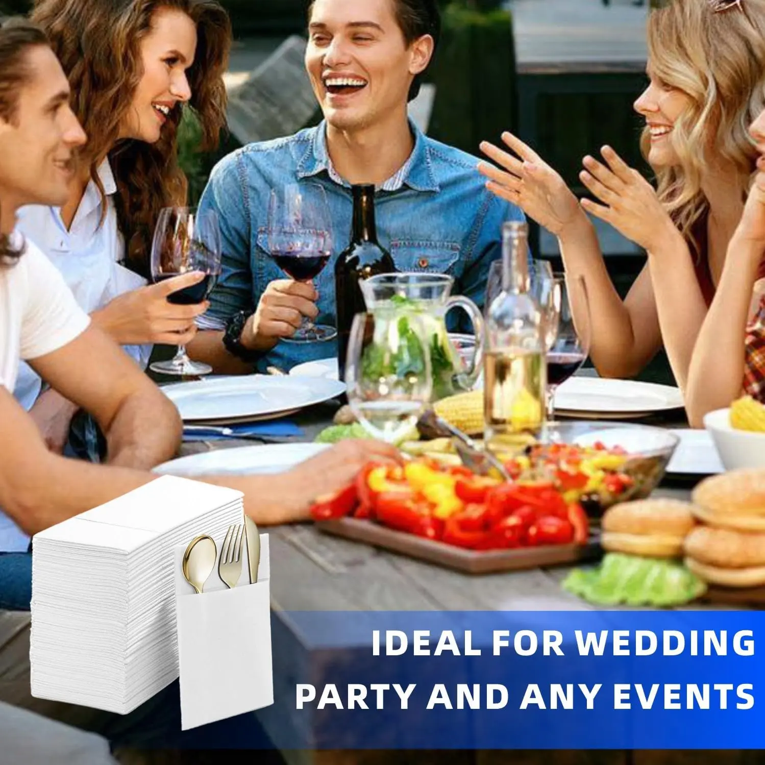 Disposable Dinner Napkins With Built-in Flatware Pocket, Pre folded Party Napkins For Silverware, Linen Feel Napkins Luxury And Elegant For Wedding Party Events, White, Total 50 Count