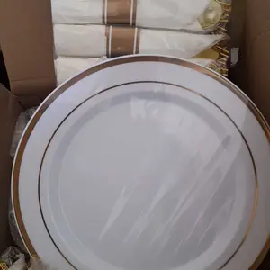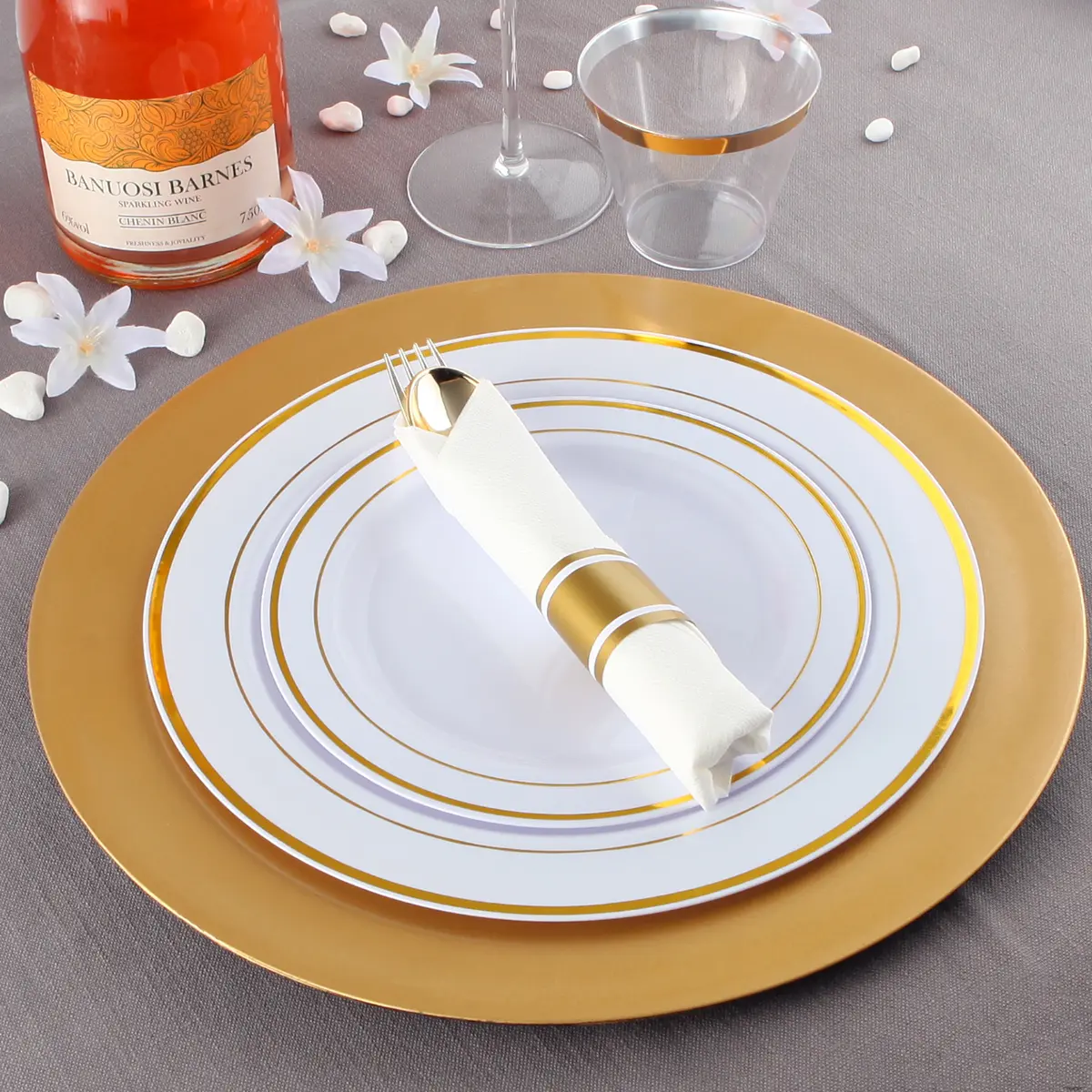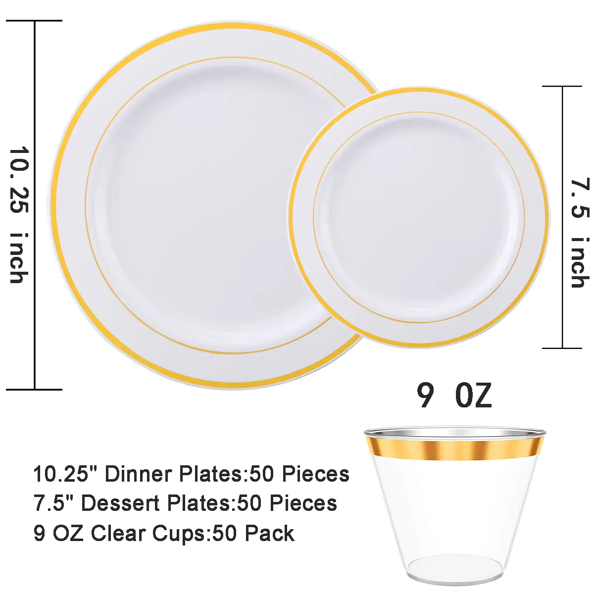 350Gold:Plastic Plates Disposable for 25 Guests Include:Premium 10.25" Dinner Plates, 7.5" Dessert Plates, 9oz Cups & Cutlery for Weddings, Catering Events - 50 Guest Service - Elegant & Sturdy Premium 10.25" Dinner Plates, 7.5" Dessert Plates, 9oz Cups & Cutlery for Weddings, Catering Events - 50 Guest Service - Elegant & Sturdy