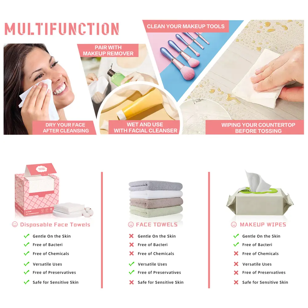 This product is very good. I will continue to reorder. Nothing like disposable washcloth. Great for removing makeup without having the worry of staining my washcloths. Very soft for the skin.
