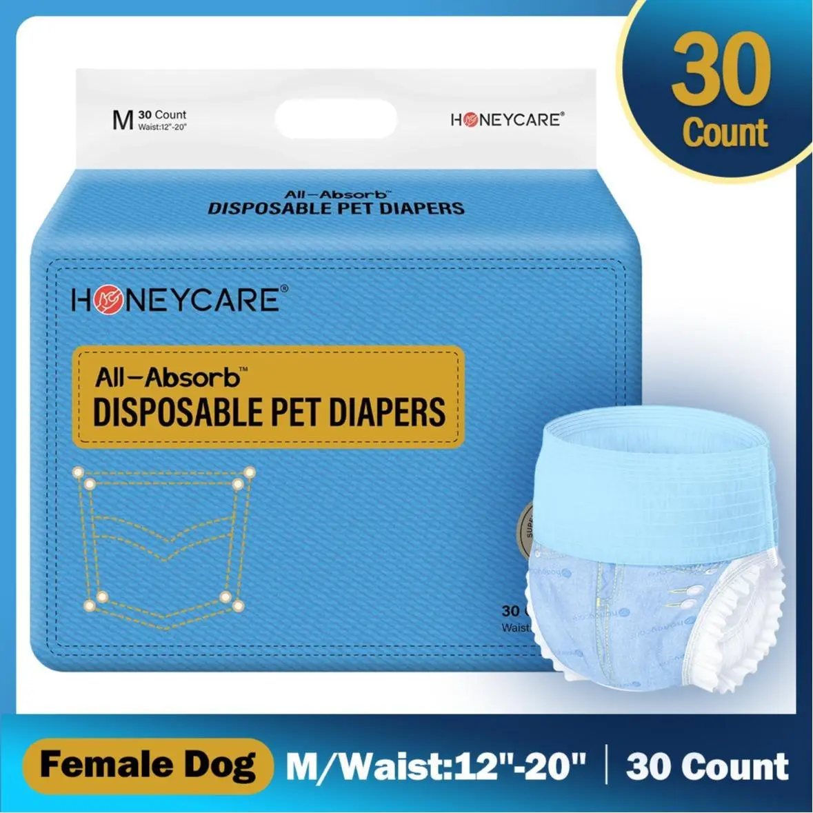 HONEYCARE Disposable Pet Diapers: Super Absorbent, Breathable, and Leak-Proof