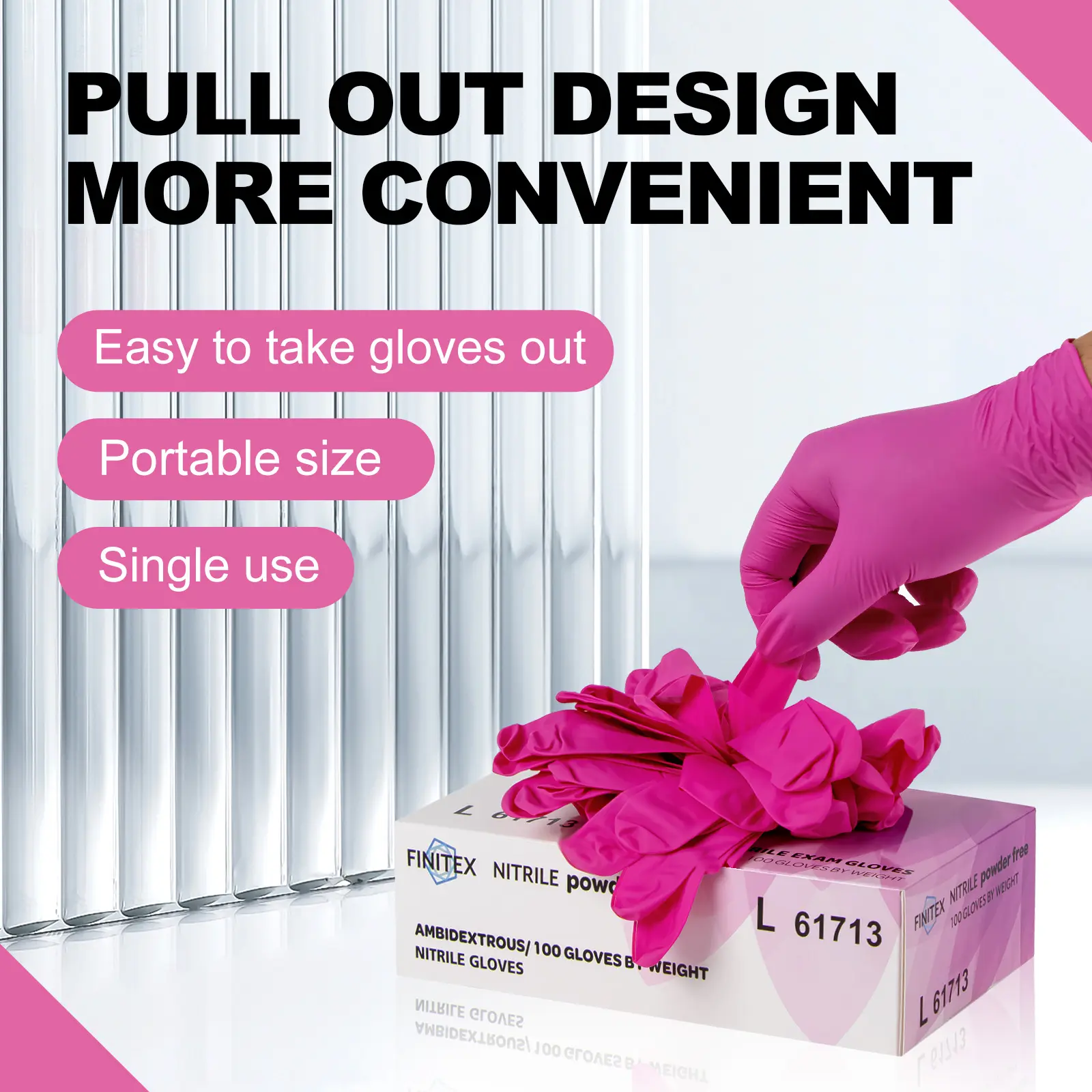 🌸 FINITEX Rose Red Nitrile Gloves 🌸