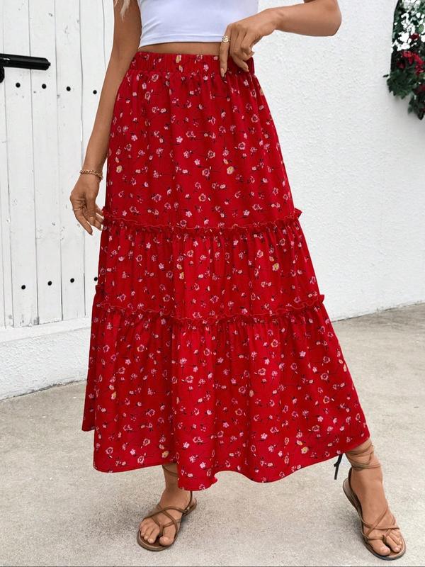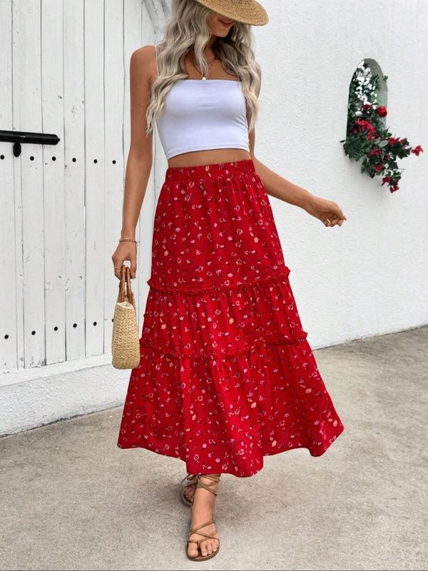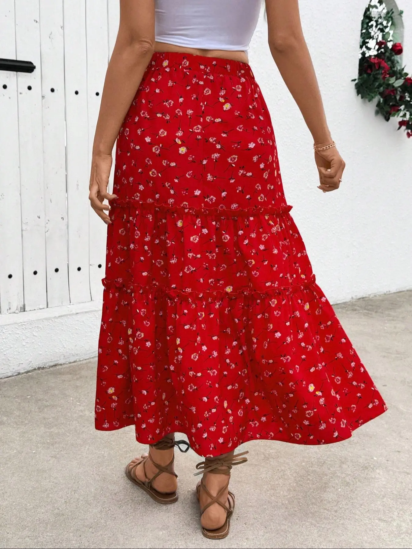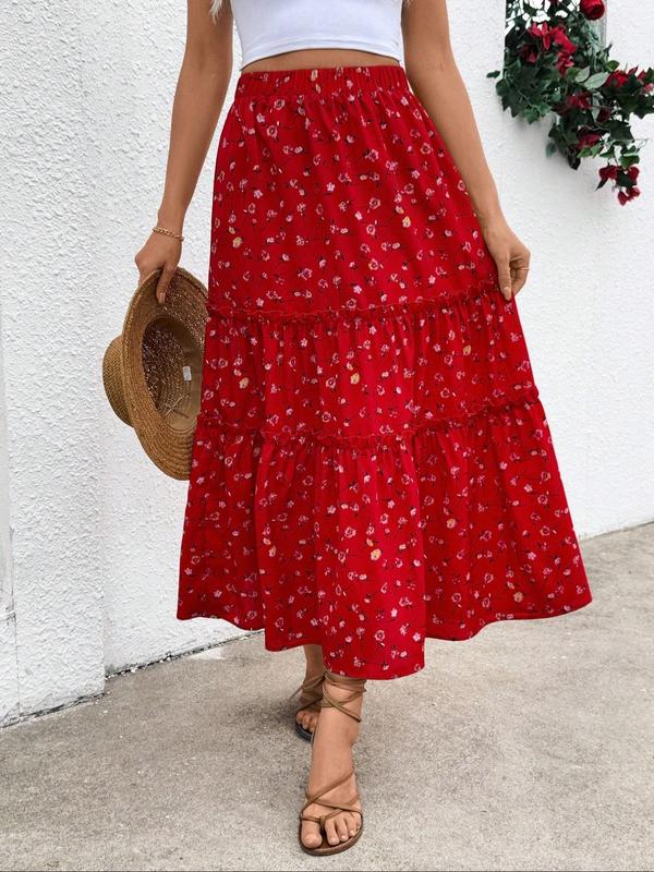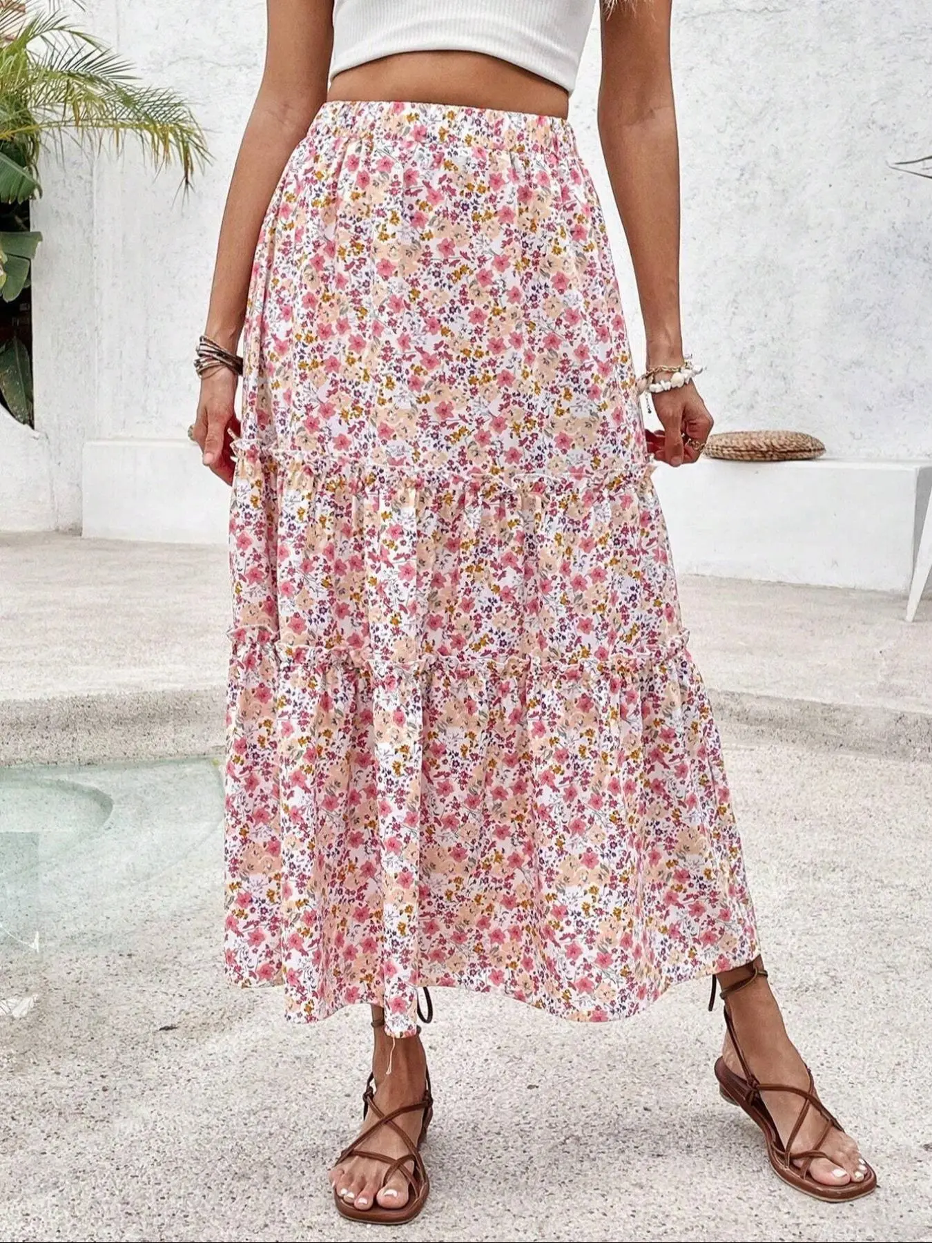 #Women's Boho Ditsy Floral Print Long Skirt#, Elegant Fashion Casual A Line Skirt for Daily Holiday Vacation Wear, #Ladies Bottoms for Summer, #Womenswear, Elegant Chic Skirt, Bohemian Summer Skirts, #Floral Printed Skirt#