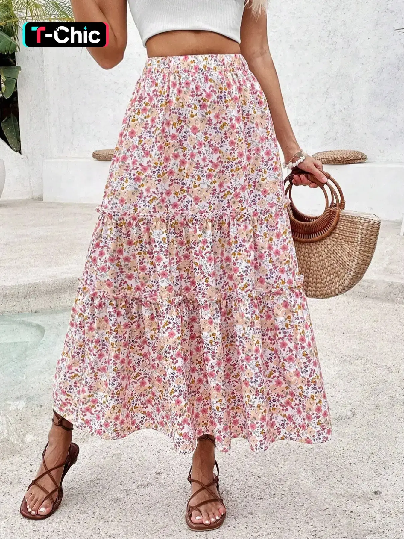 #tiktokshop#wow#Women's Ditsy Floral Print Long Skirt, Elegant Fashion Casual A Line Skirt for Daily Holiday Vacation Wear, Ladies Bottoms for Summer, Womenswear, Elegant Chic Skirt, Bohemian Summer Skirts, Floral Printed Skirt