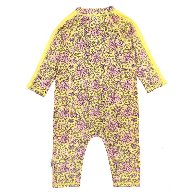 Our infant and toddler long sleeve sunsuit is full of features to make fun-in-the-sun a breeze. With neck to wrist to ankle sun protection, there will be no more sunscreen-slick wiggly little, squirming out of your arms. They are protected from the sun’s rays anywhere this sunsuit covers!