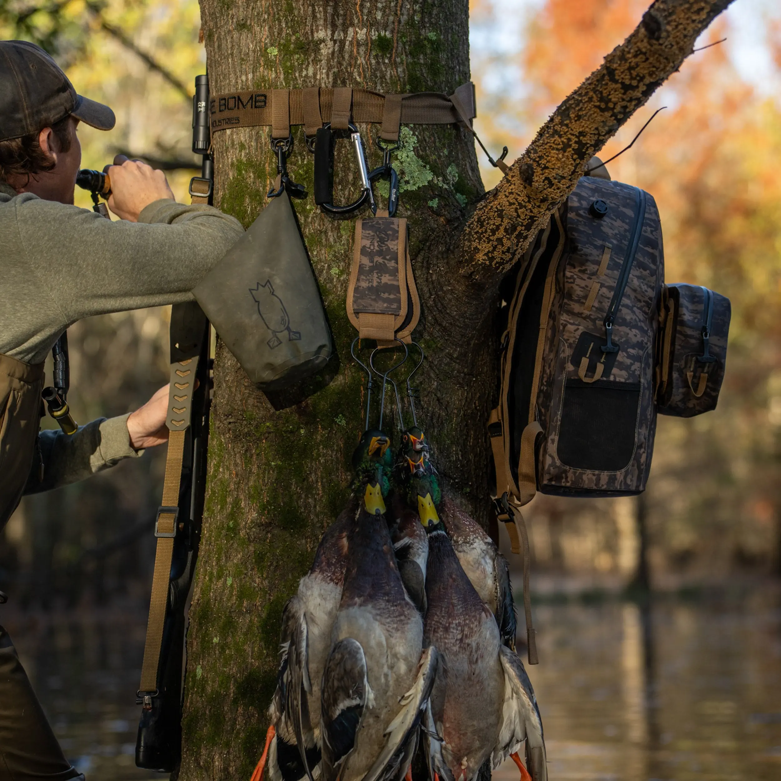 The Duck Hunting Tree Strap provides a secure and accessible way to keep hunting gear organized, reducing clutter and ensuring quick access to essentials. Its multiple attachment points allow for versatile use, making it a must-have for serious hunters.