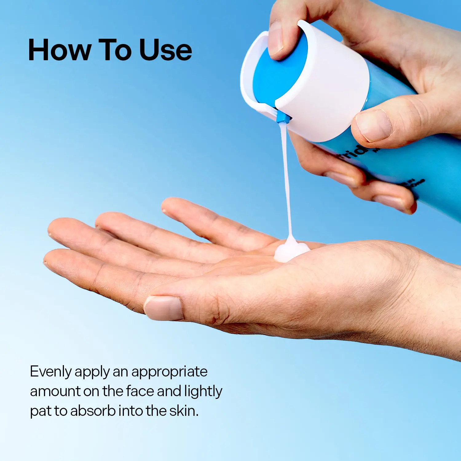 Evenly apply an appropriate amount on the face and lightly pat to absorb into the skin.