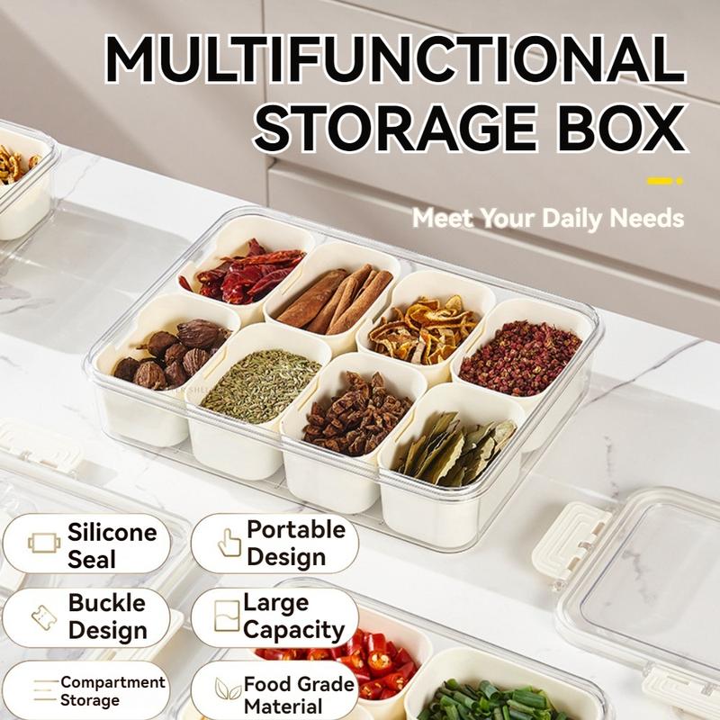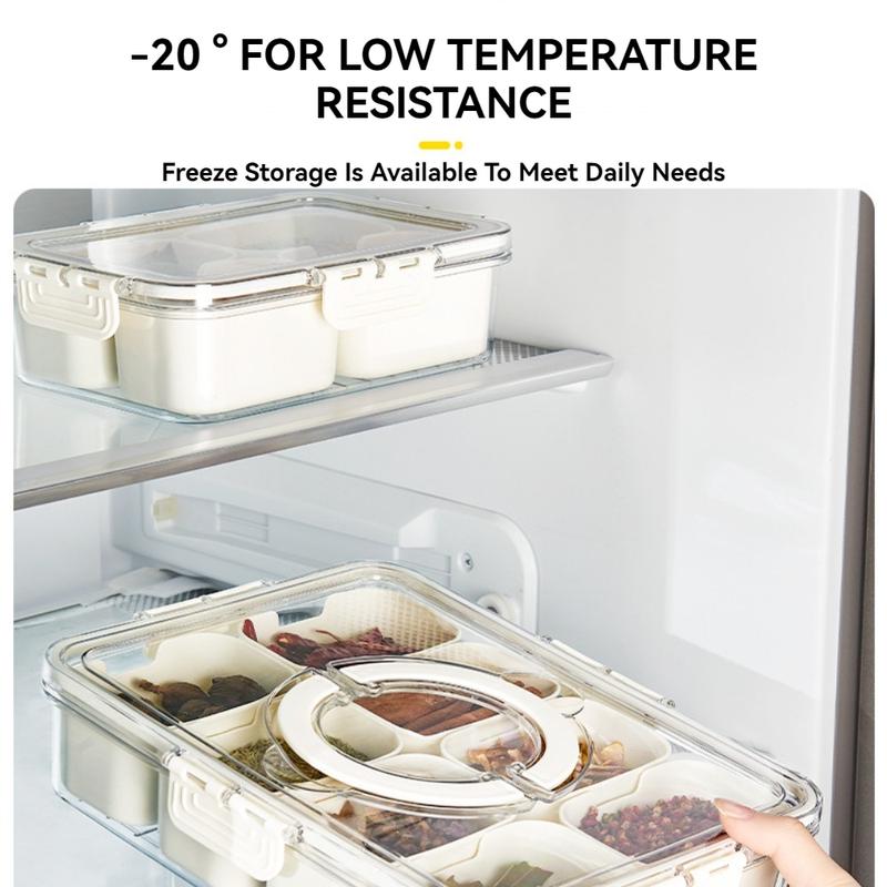 【Customizable Compartments】: 8 divided compartments are customizable and removable. The separate design makes snacks and dried fruits better categorized without mixing the flavors.