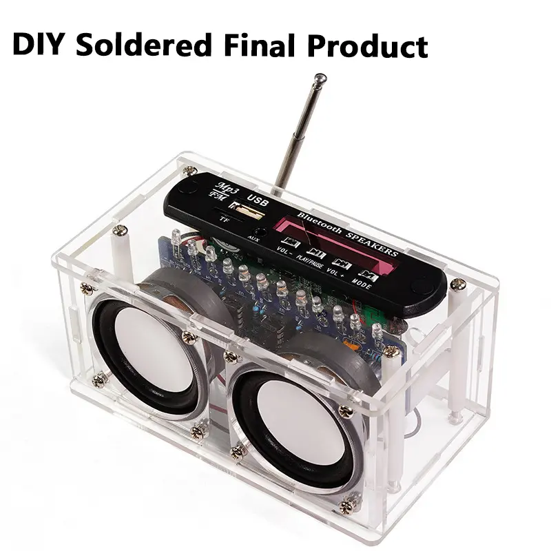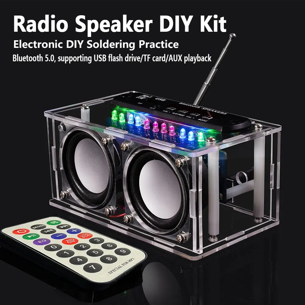 Soldering kit, radio kit, diy bluetooth speaker kit, DIY Bluetooth-Compatible Speaker Kit,Recording Function FM Radio Soldering Practice Kit with LED Spectrum,TF/AUX/Bluetooth/USB Support,Remote Control Soldering Project for Indoor/Outdoor Use