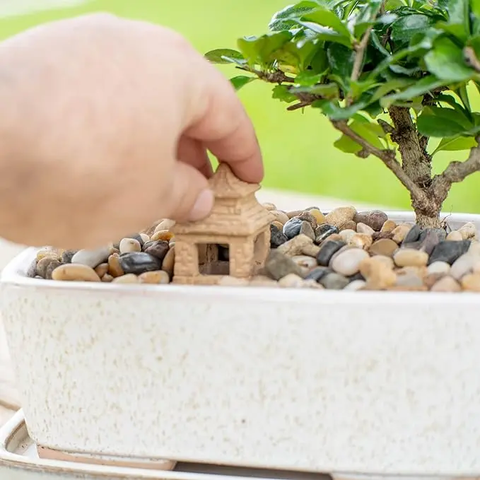 This bonsai tree it contains everything you need: The bonsai, the soil, the pot, the pruners, and decorative elements.