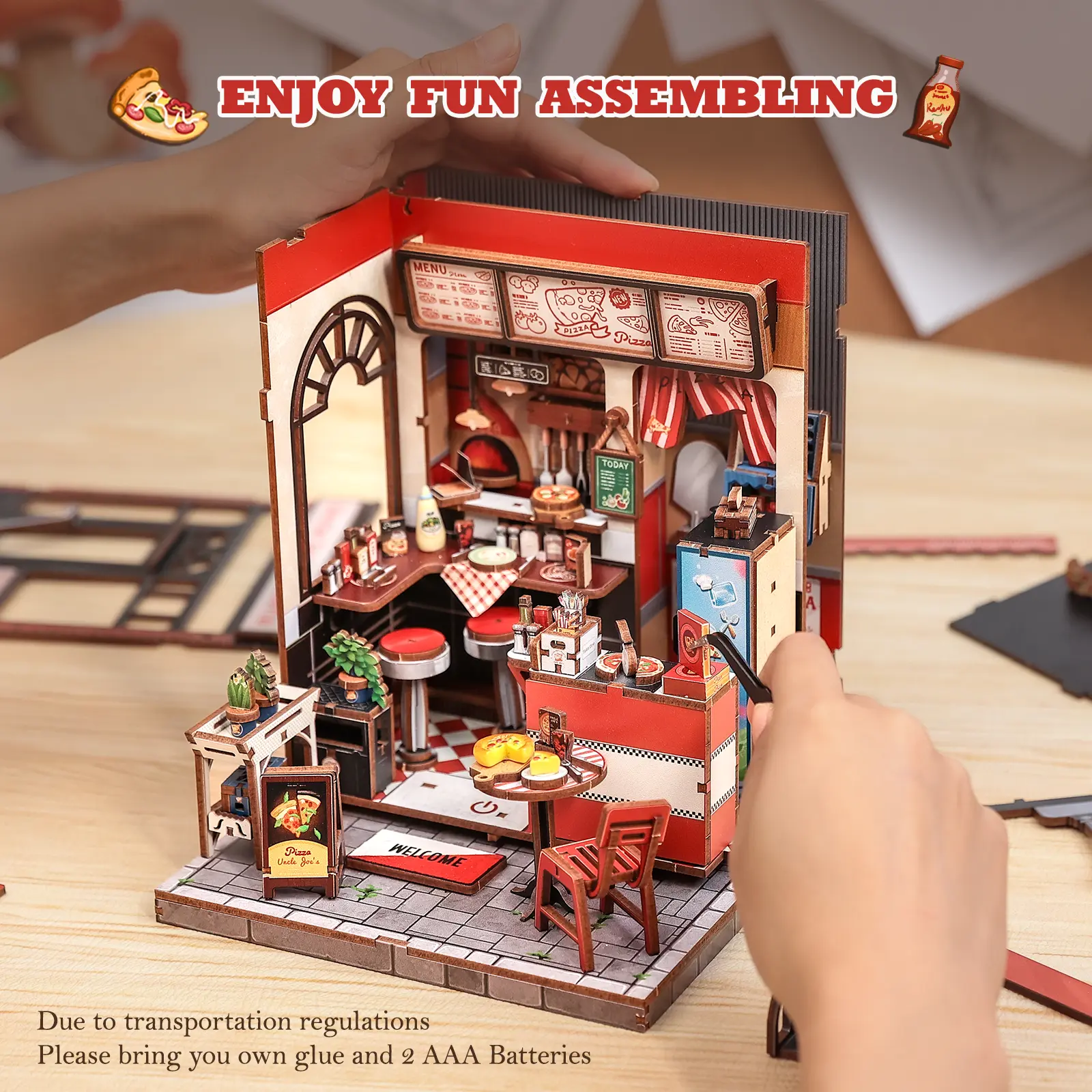 Reminder - The DIY book nook bookend kit for adults has been 100% carefully checked before delivery to ensure that the accessories are complete and not missing. If you have any questions during assembly, please feel free to contact us. We will solve any problems as soon as possible. Note: You need to prepare silicone liquid glue and two batteries (type AAA).