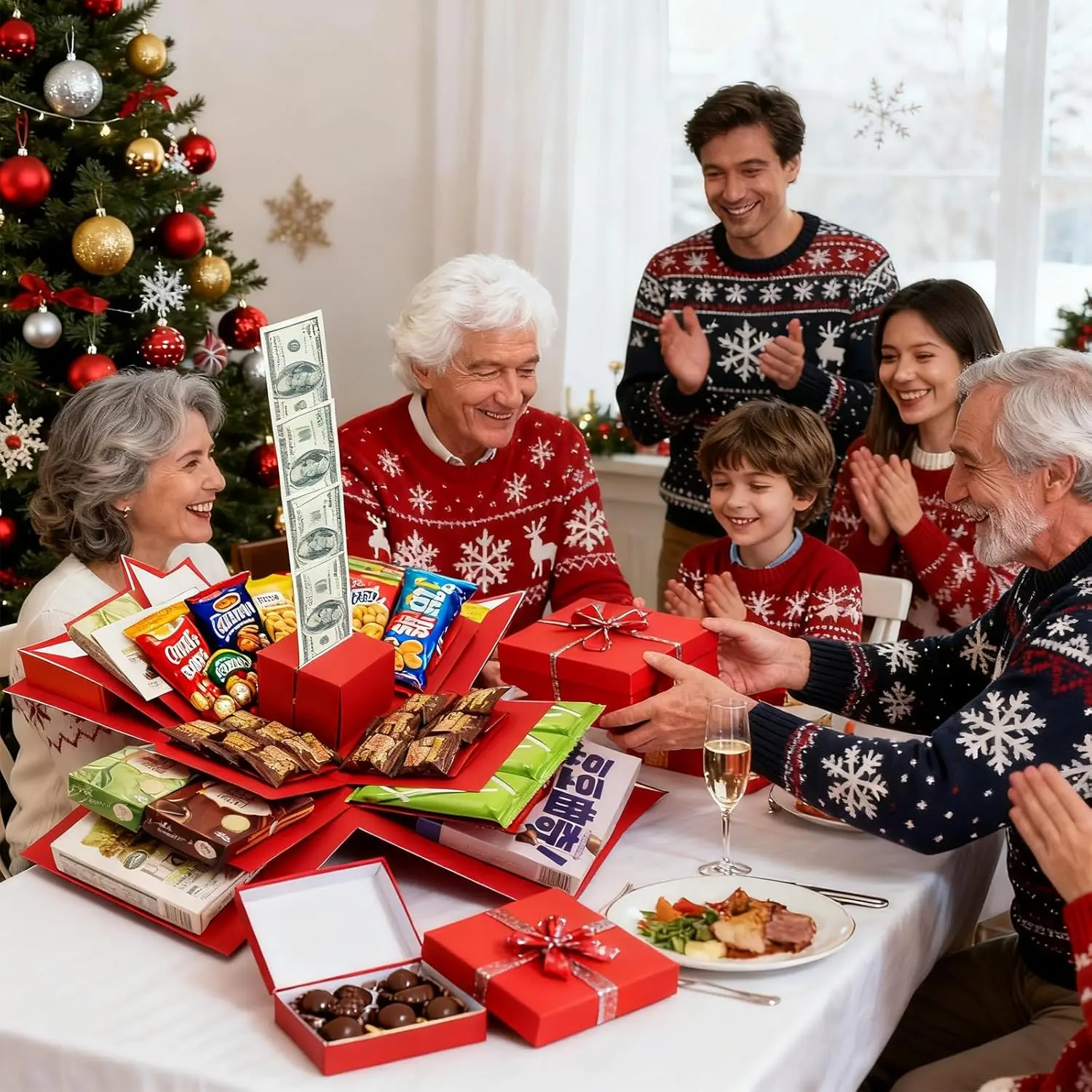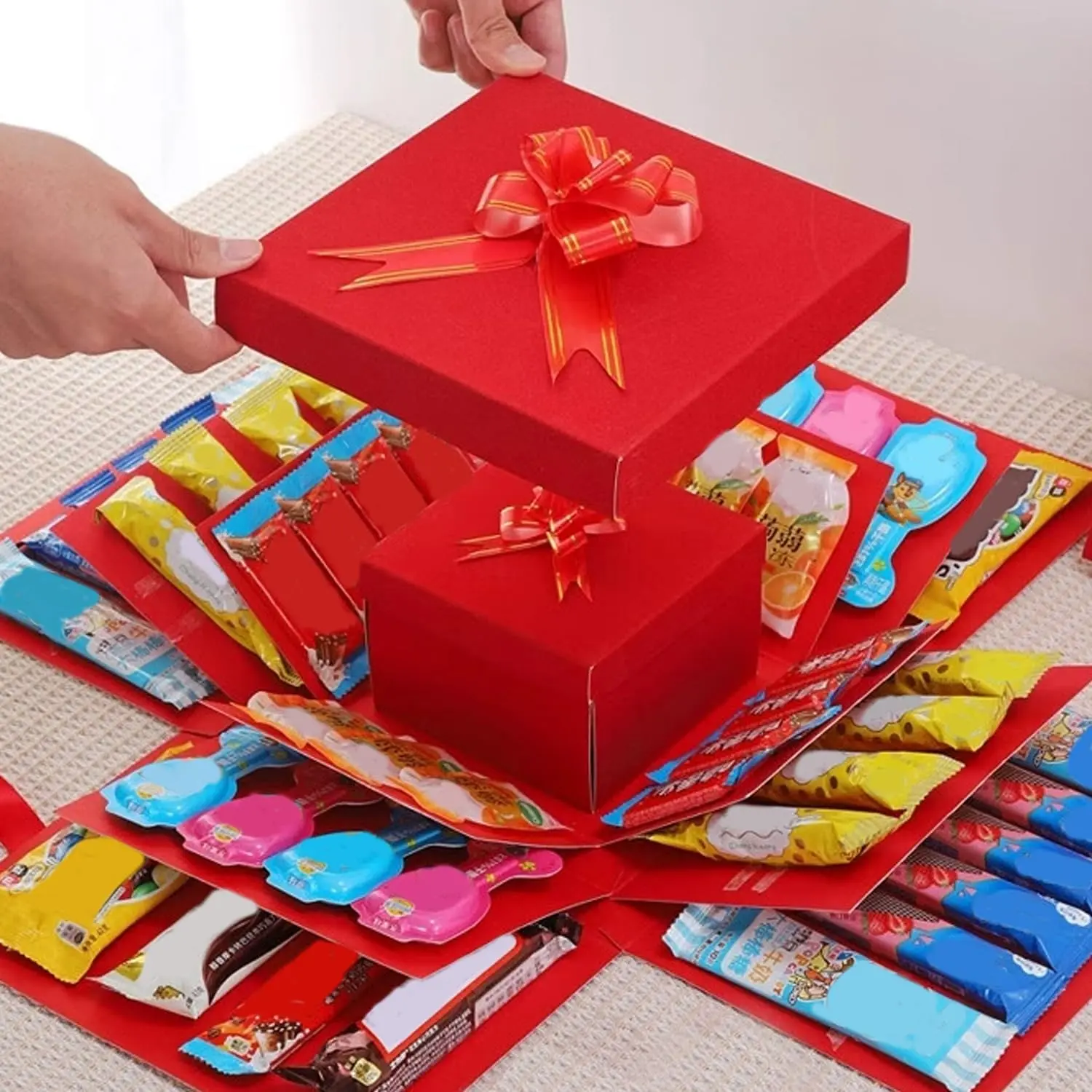 5-Layer creative explosion box, wrap box. Creating a 5-Layer of various gifts by yourself. An ideal, mysterious self-made for birthday, Christmas and anniversaries. (Red, Square)
