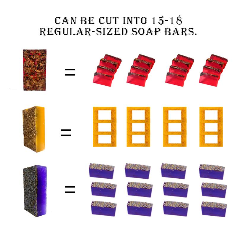 ·Customizable: Can be cut into approximately 12 smaller soaps.