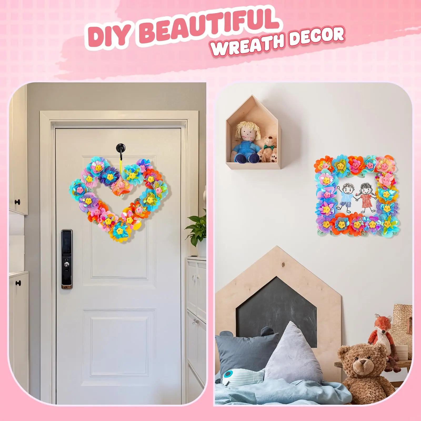 Crafts for girls ages 6-8 help develop hands-on skills, coordination, and artistic expression. The flower craft kits for girls include unique components that allow kids to easily transform bouquets into heart-shaped wreaths, personalized picture frames, or other creative shapes. 🎨