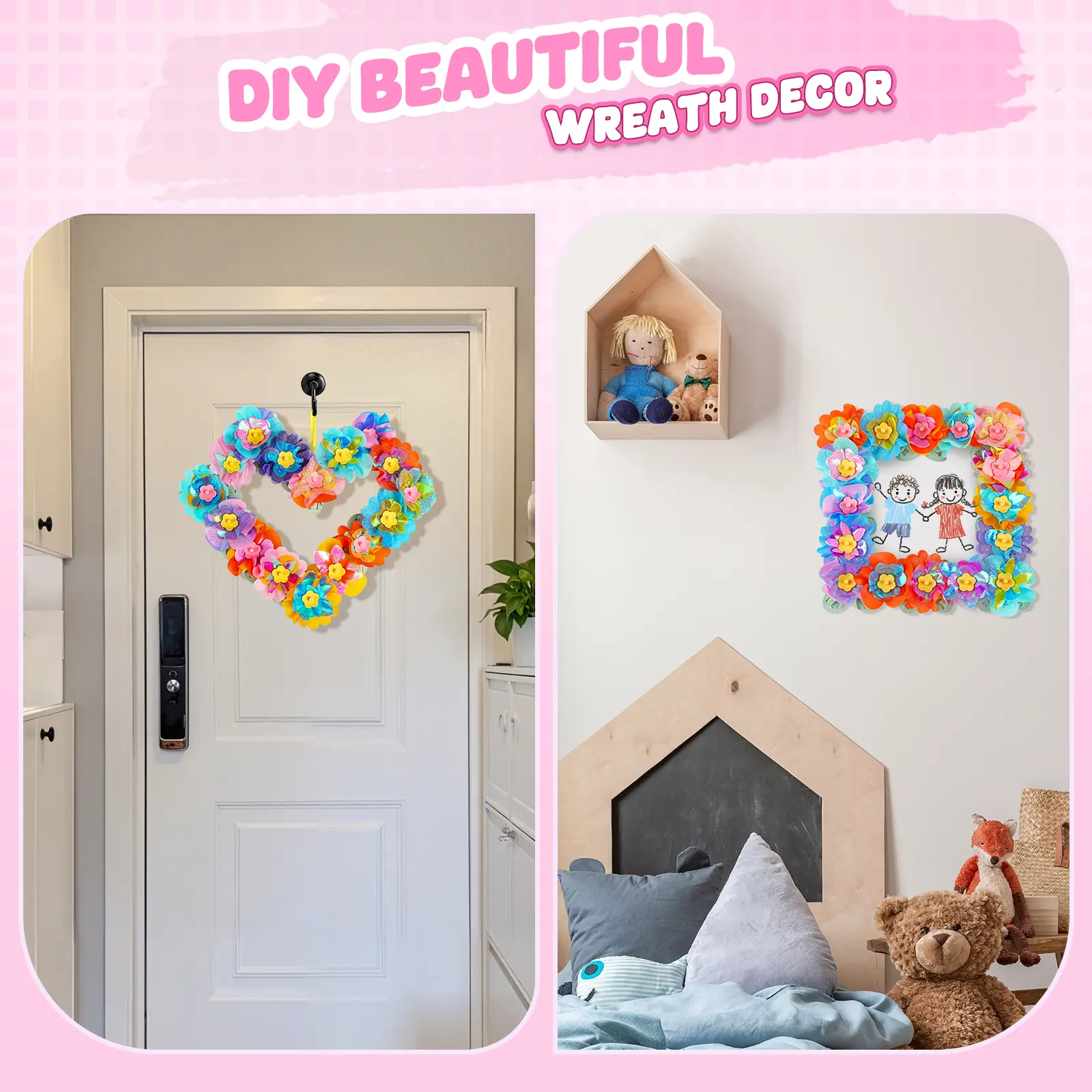 CREATIVE WREATHS, MAKING BEAUTY UNIQUE: The flower craft kits for girls includes unique components that allow kids to easily transform bouquets into heart-shaped wreaths, personalized picture frames, or other creative shapes.The arts and crafts for kids 4-6, each kids crafts piece can become a thoughtful gift or a cherished memento.Designed toys for girls aged 5-7 6-8 8-13, it not only sparks imagination but also lets them showcase their unique style, add a splash of vibrant color to life.