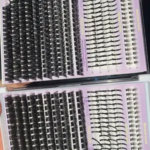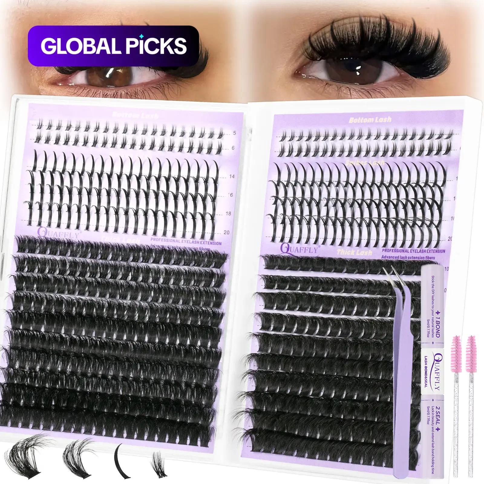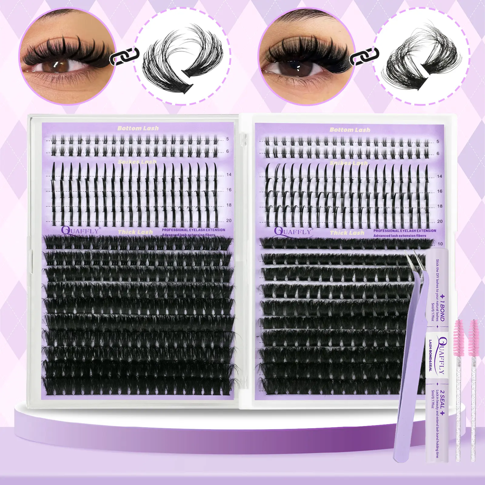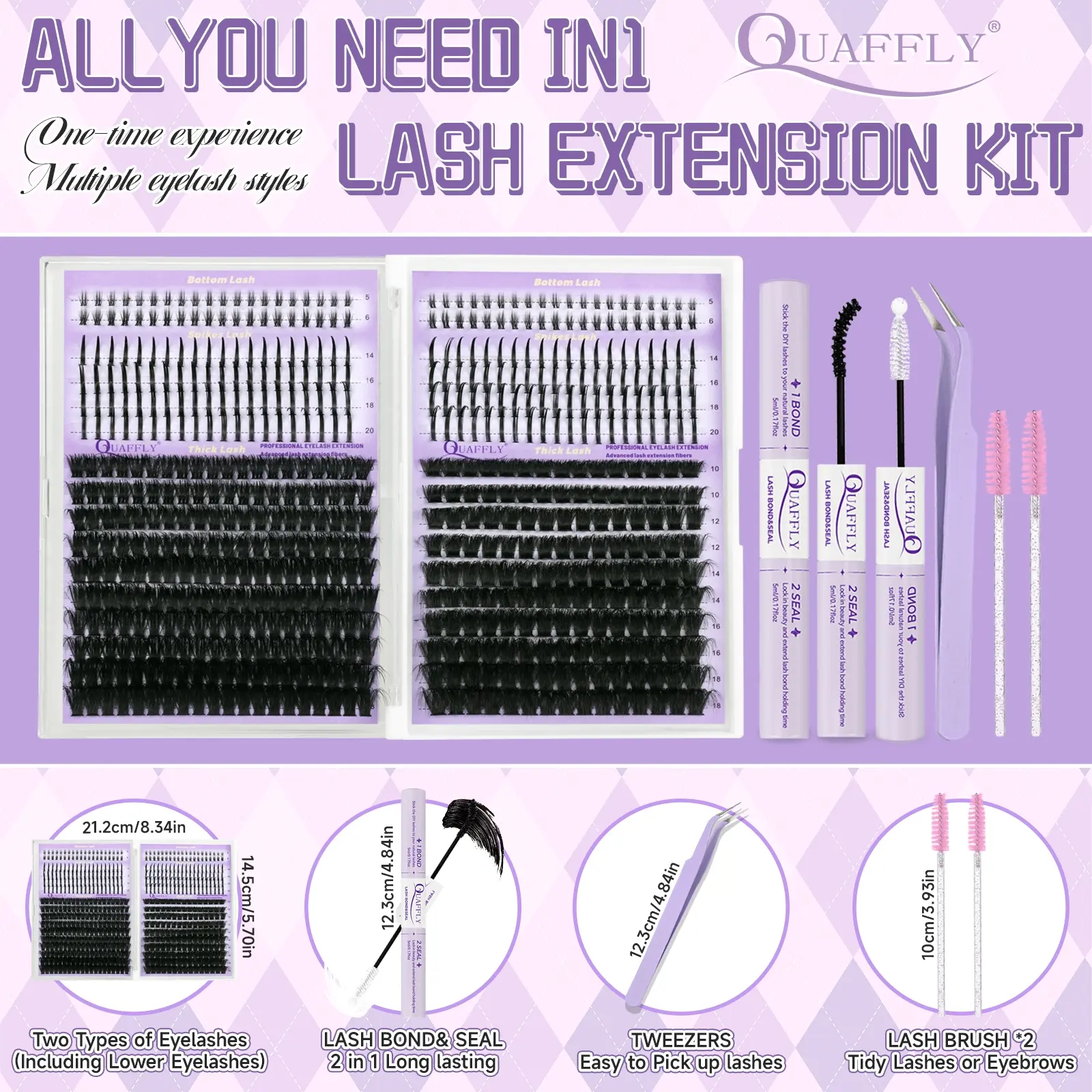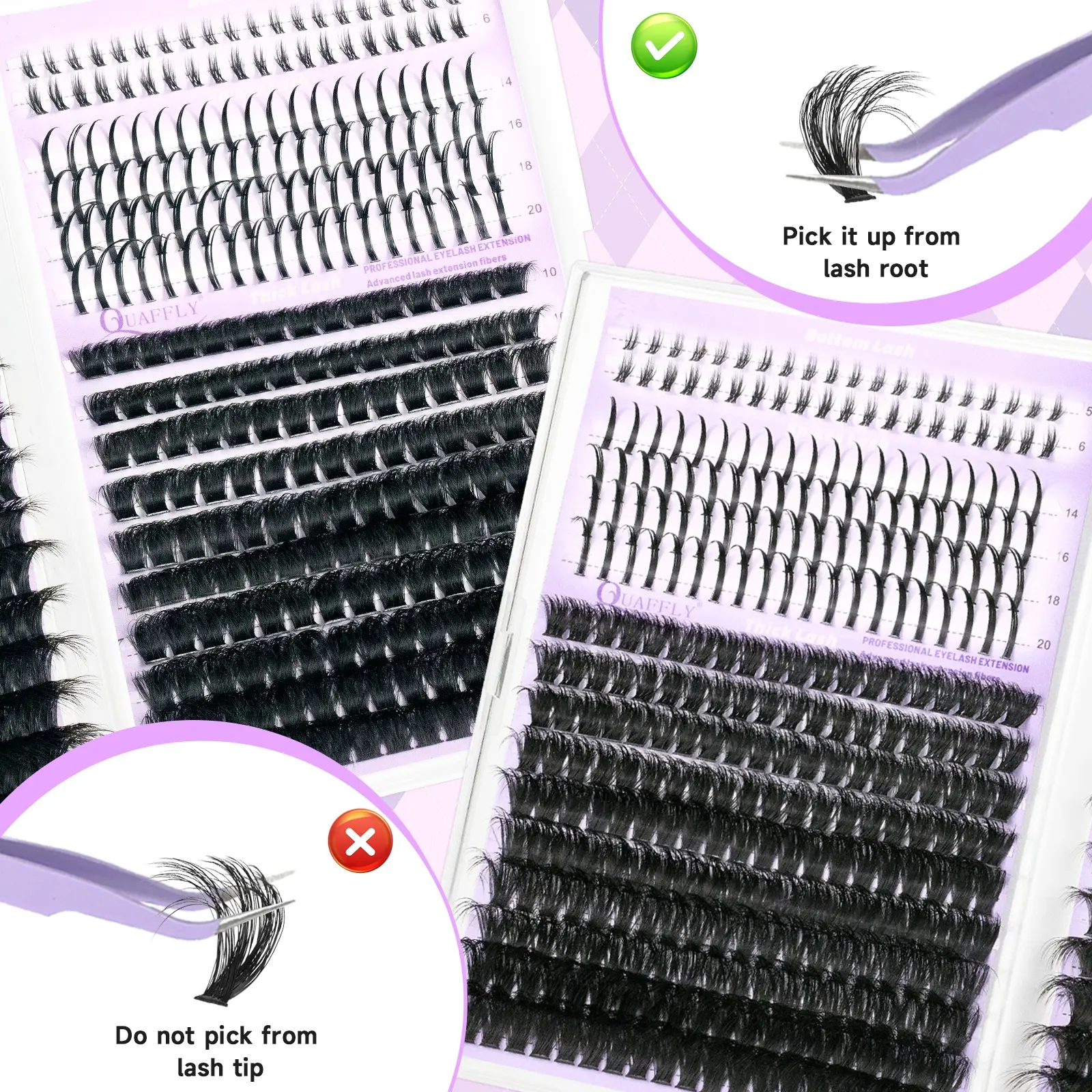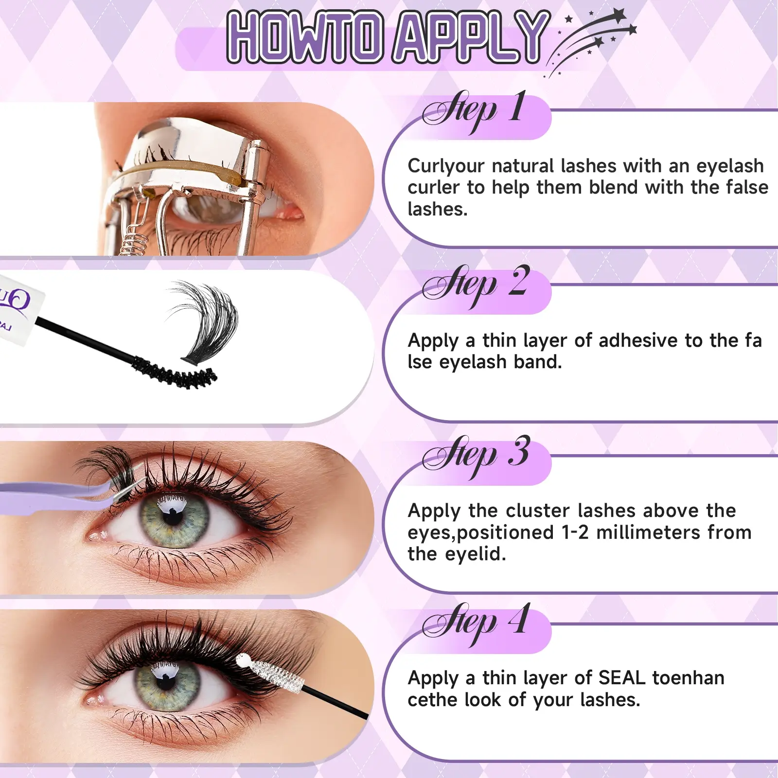 DIY Lash Extension Kit 100D+150D Volume Lash Clusters with Spikes Lash Extension Kit Bottom Lashes Wispy Cluster Eyelash Extensions Kit with Lash Bond and Seal Tweezer Brush Easy To Apply Eyelash Set