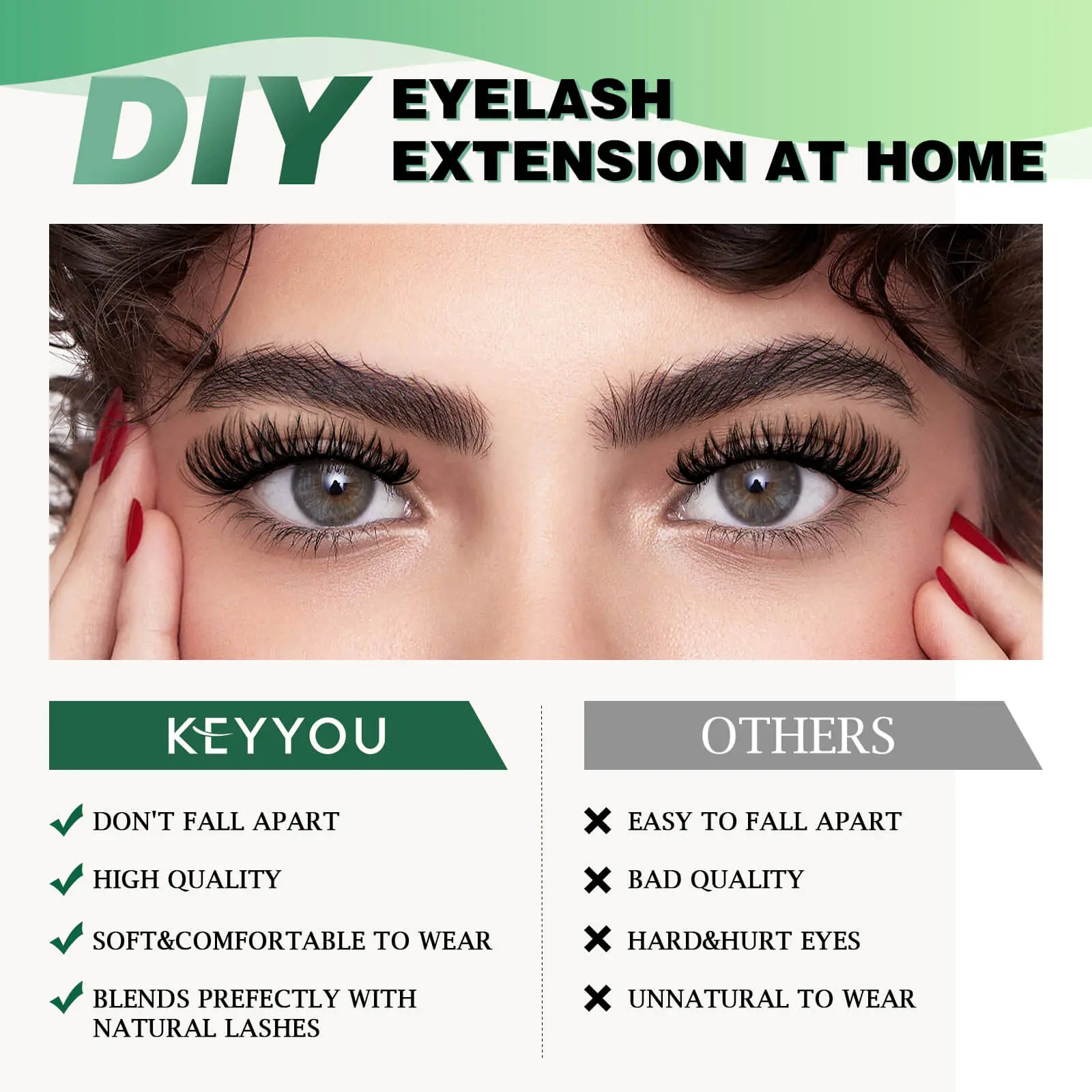 ·【High Quality Individual Lashes】Experience lightweight comfort with our soft fiber lash clusters. They're cruelty-free, irritation-free, and offer a stunning look.