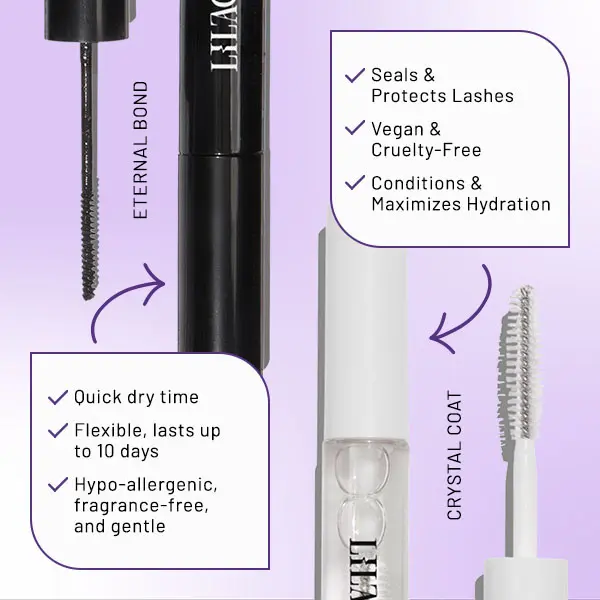 ·SEAL: Swipe a thin layer of Crystal Coat inside of the Applicator and squeeze wisps and natural lashes together to seal the bond.