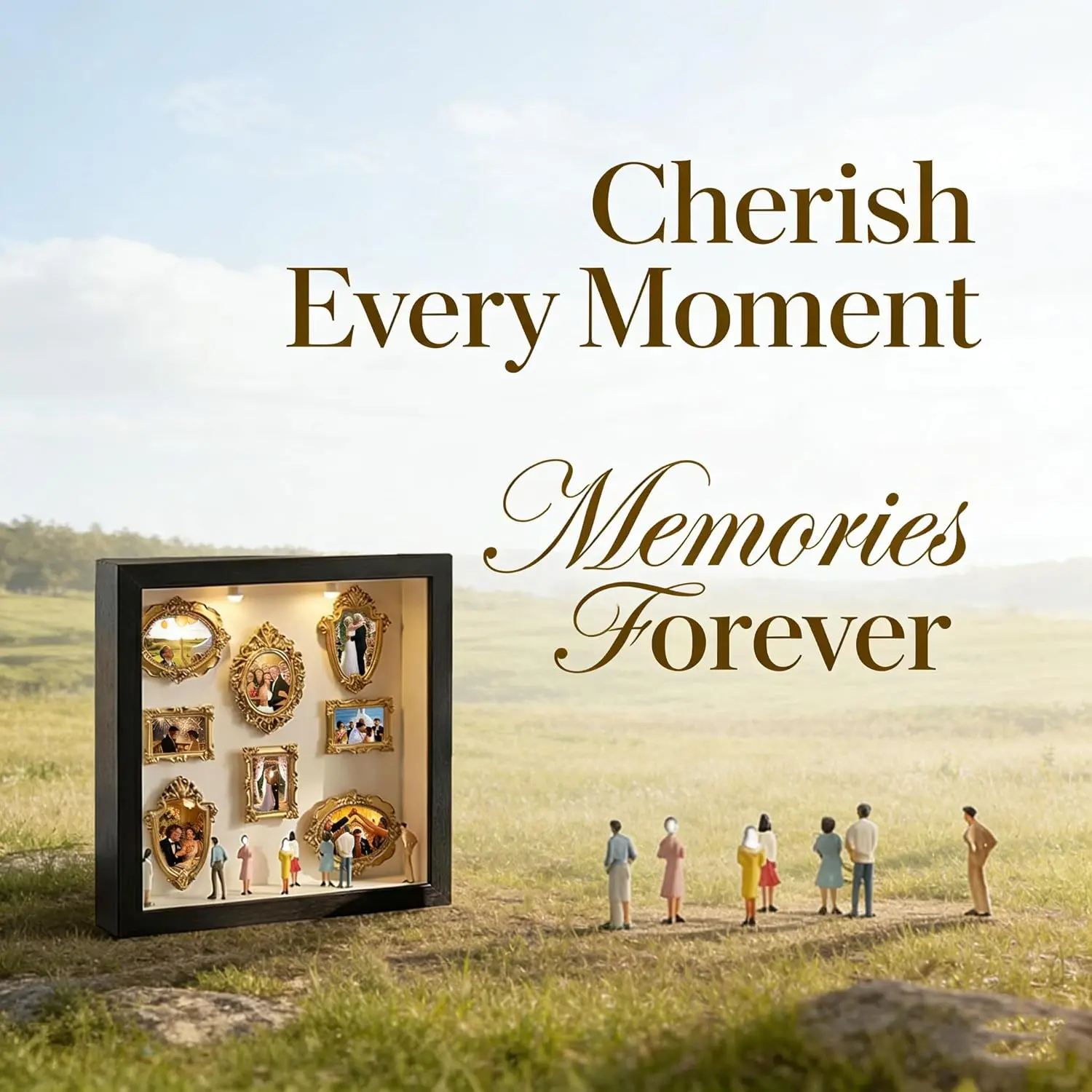 ·Build Personalized Stories: This premium kit has 8 elegant gold mini frames and 8 handcrafted figurines, enabling you to design a custom mini gold frames for lifes key moments.