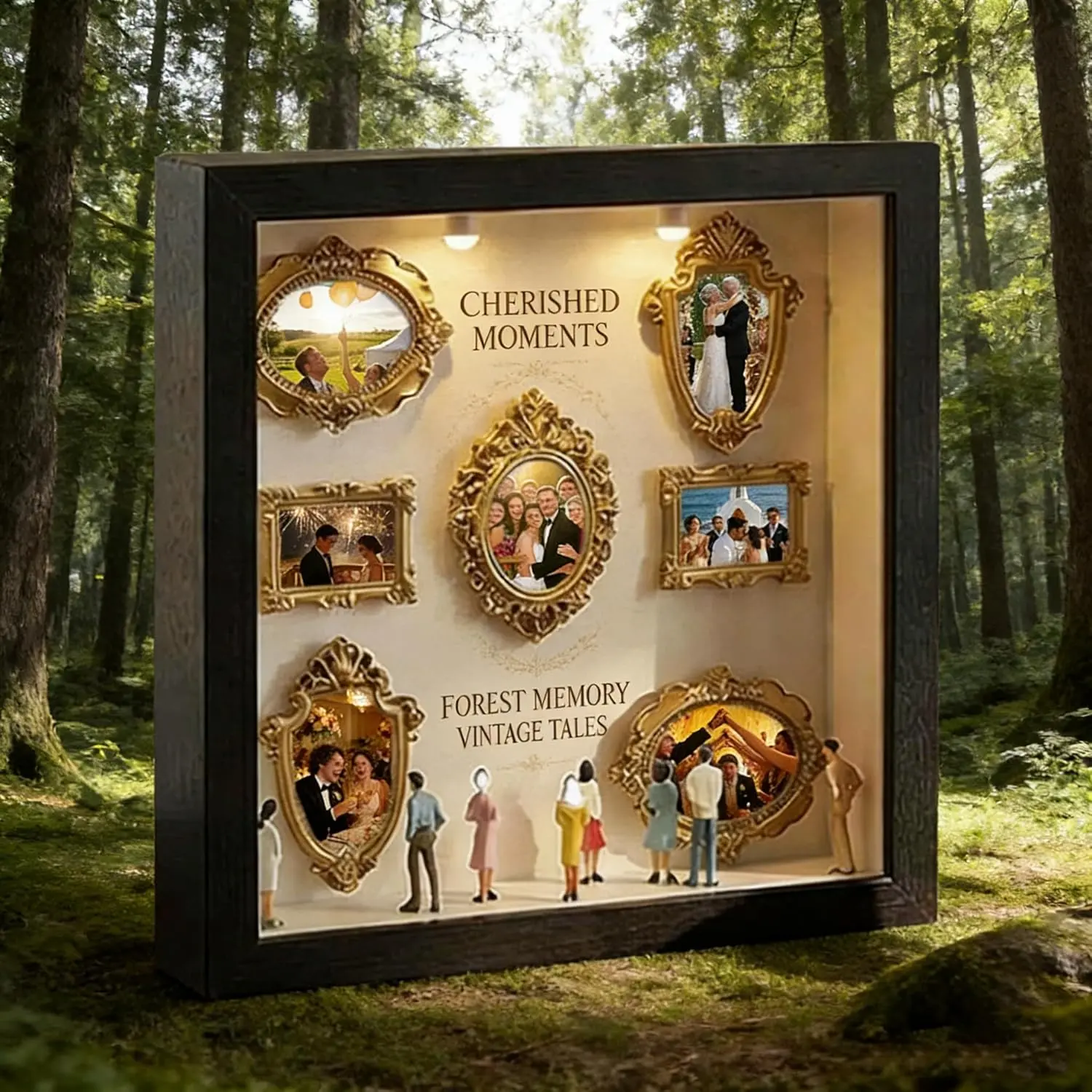New DIY Mini Gold Grames Silhouette Box, Upgrade Shadow Box Frame Kit with Gold Miniature Museum & Figurines, Celebrate Your Unique Memories in Style, for Anniversary, Wedding, Birthday & Home Decor 01