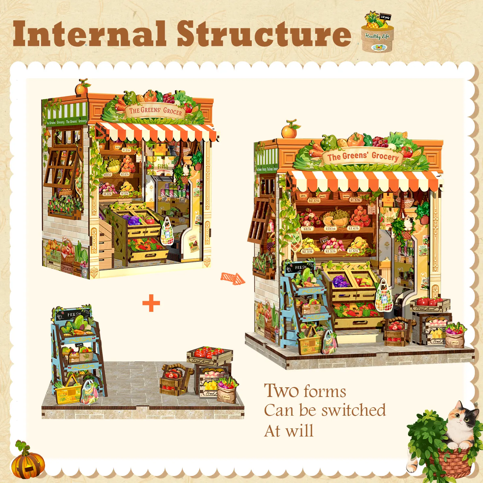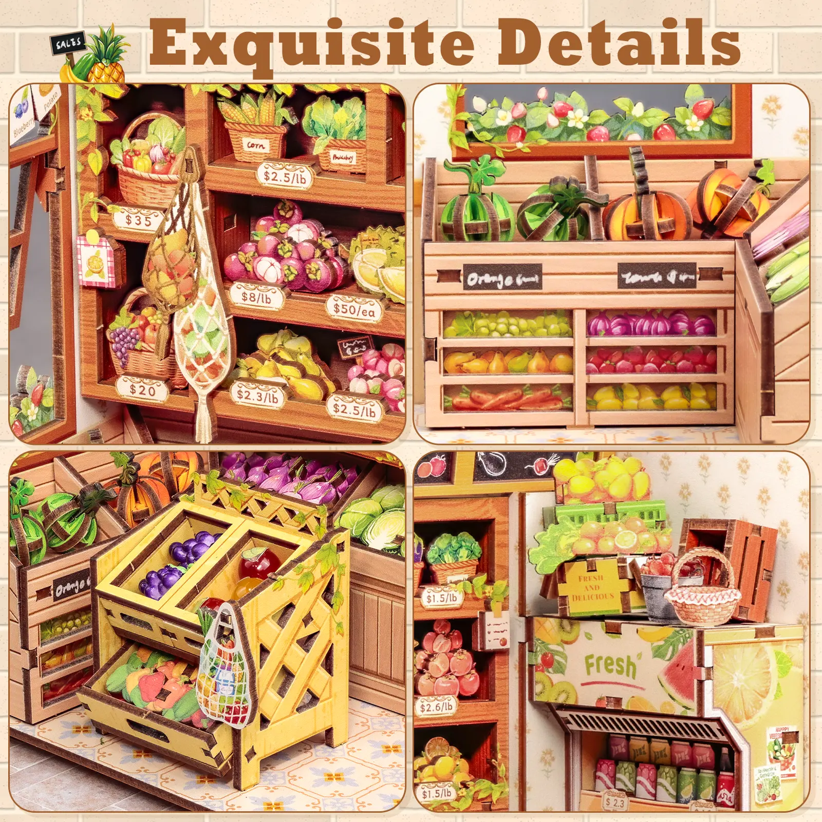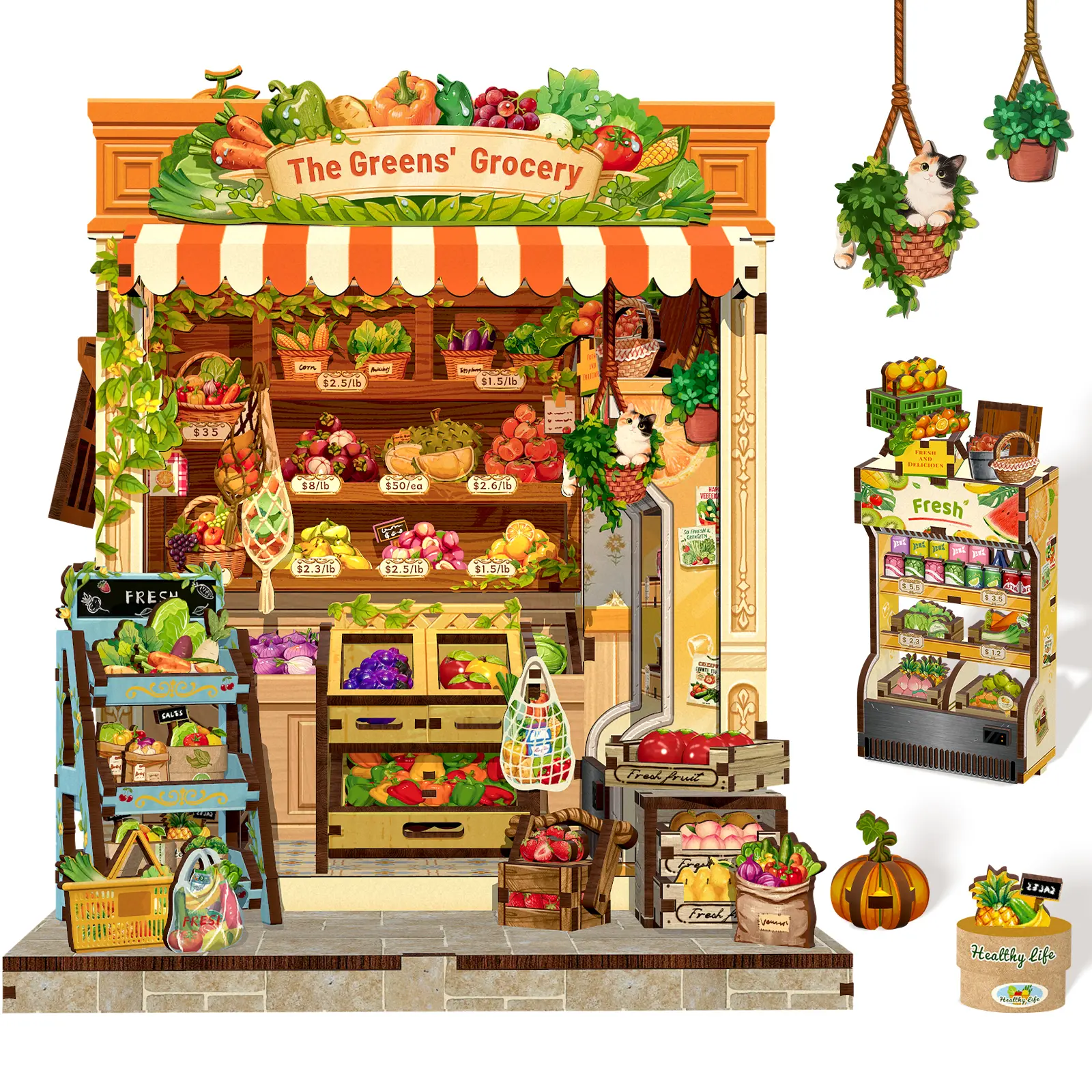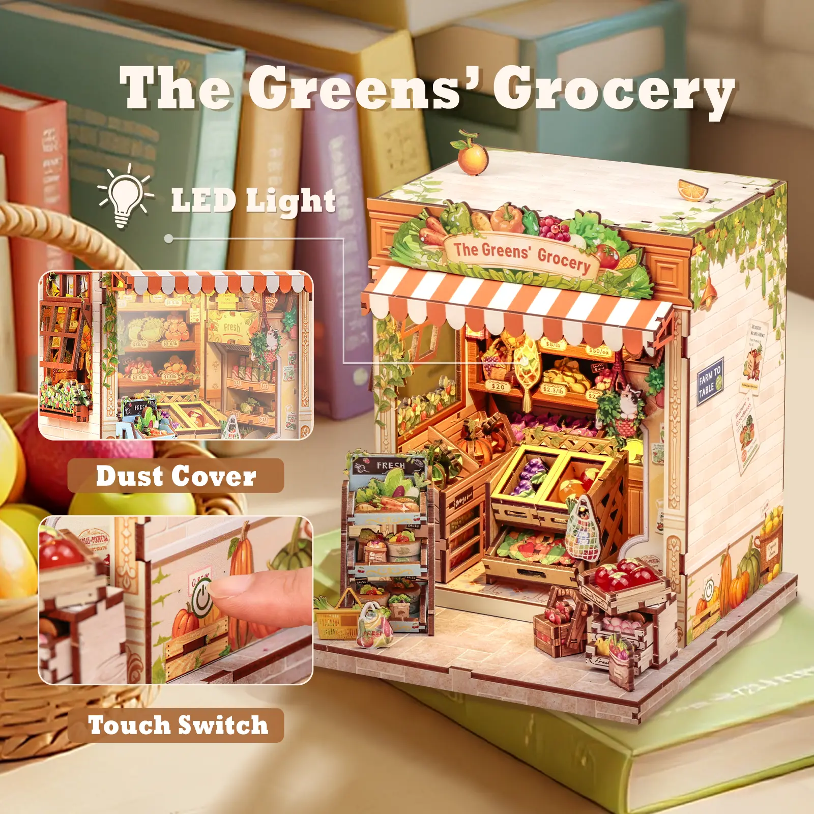 The Greens’ Grocery Book Nook Kit- The Greens' Grocery is more than a fruit and vegetable store. It is a bright spot on the city streets and a proponent of the aesthetics of daily life. Here, every piece of fruit and every vegetable is not merely food, but a brushstroke in the vibrant tapestry of summer, a source of fresh inspiration that illuminates everyday life. Open this tiny house, take away the purest, most beautiful gifts of summer.